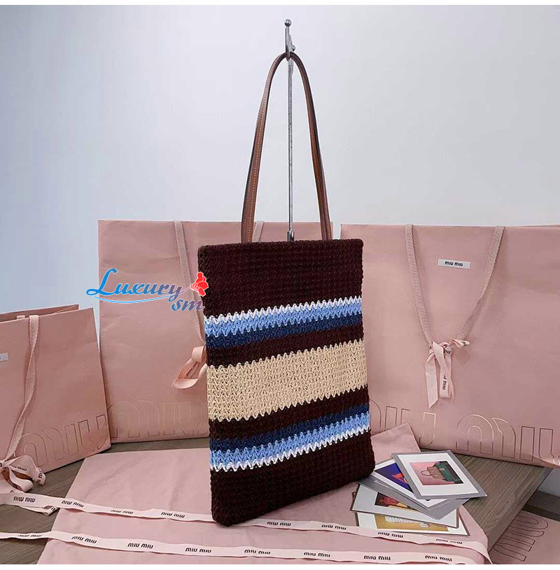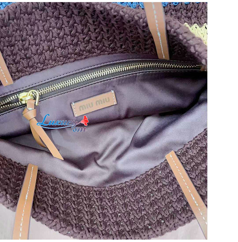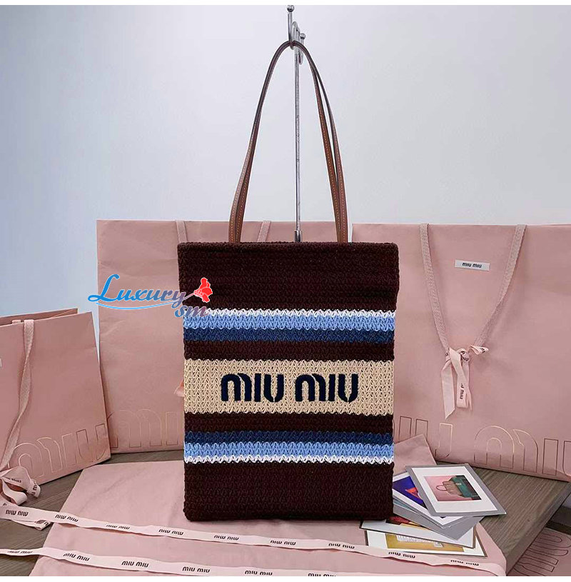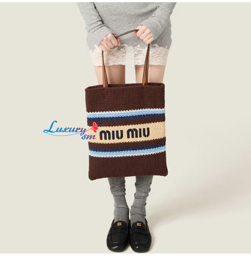 [스페셜오더]MIUMIU-5BG248 미우미우 브라운 라피아 효과 우븐 토트 백