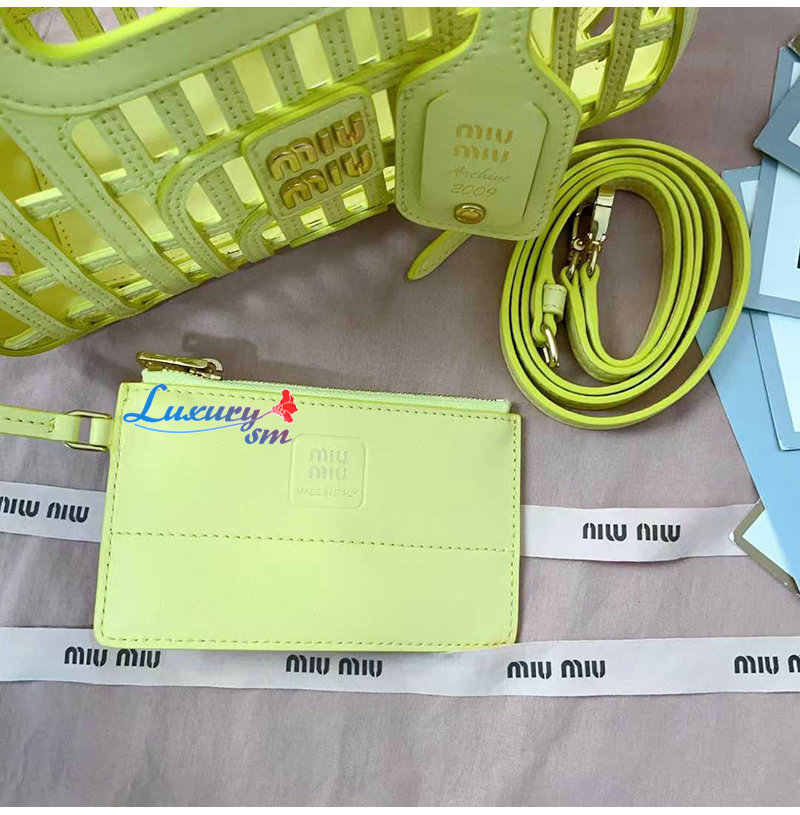 [스페셜오더]MIUMIU-5BA294 미우미우 옐로우 위빙 모티프 가죽 바스켓