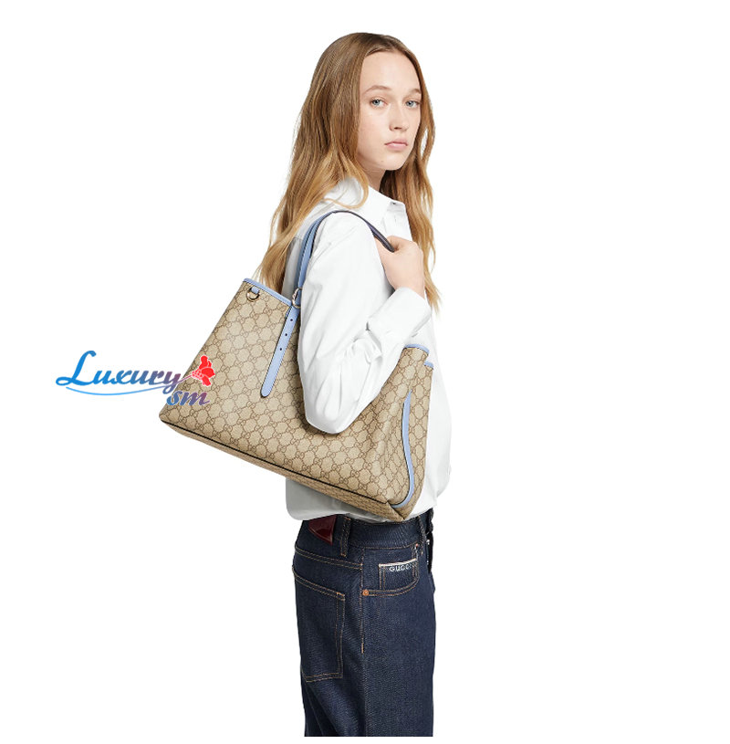 [스페셜오더]GUCCI-815213 9862 구찌 베이지/라이트 블루 GG 엠블럼 미디엄 토트백