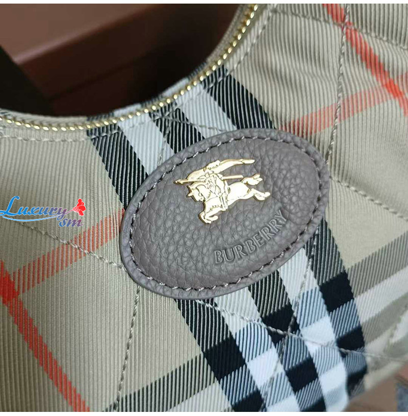 시즈널 색상의 버버리 체크가 연출된 퀼팅 나일론