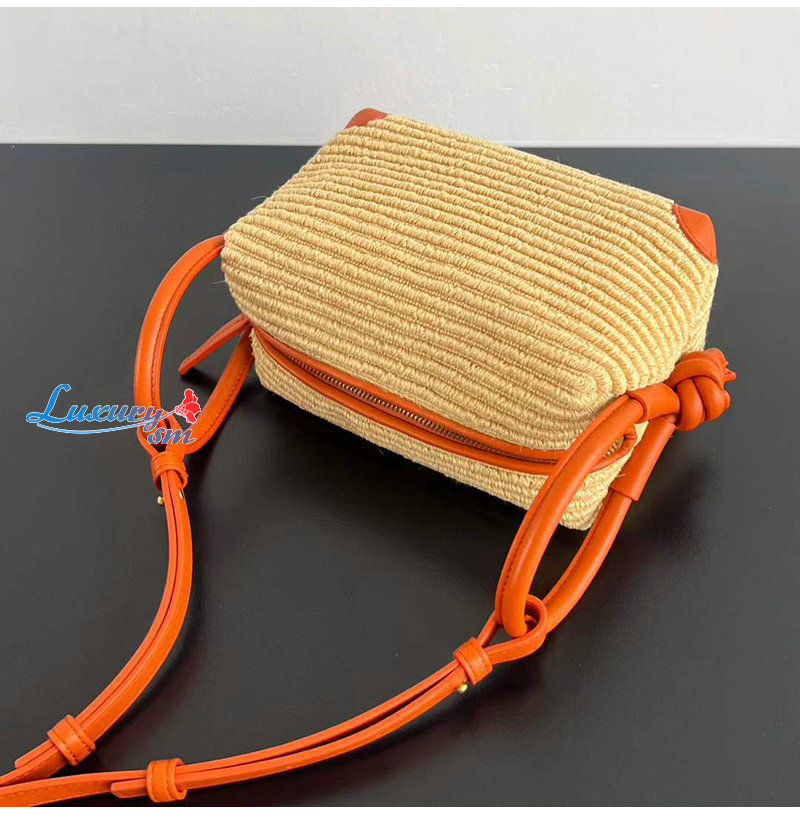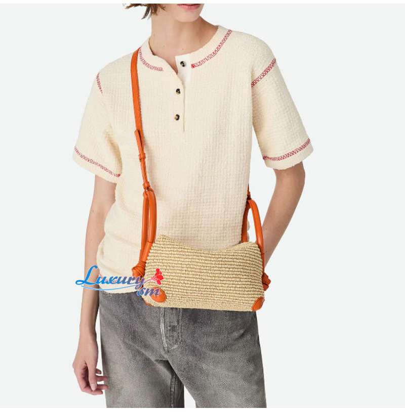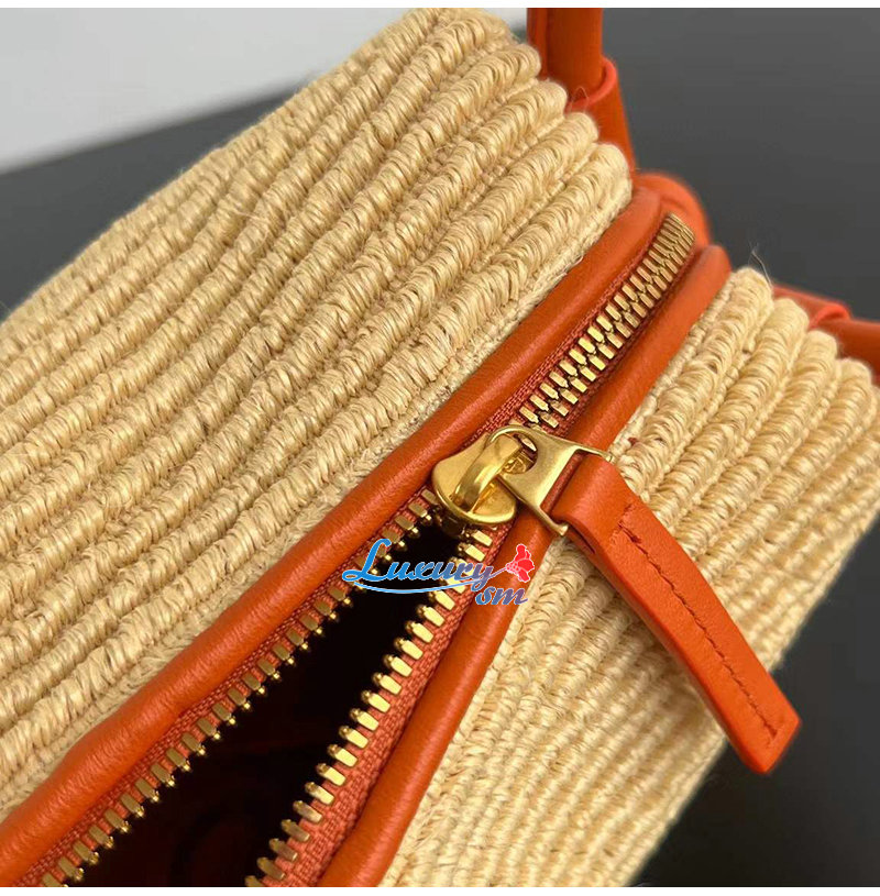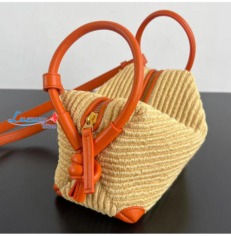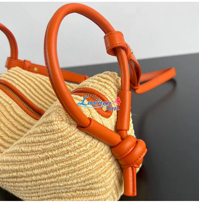 [스페셜오더]BOTTEGA VENETA-829212 보테가 베네타 오렌지 라피아 탑 핸들 루프 백
