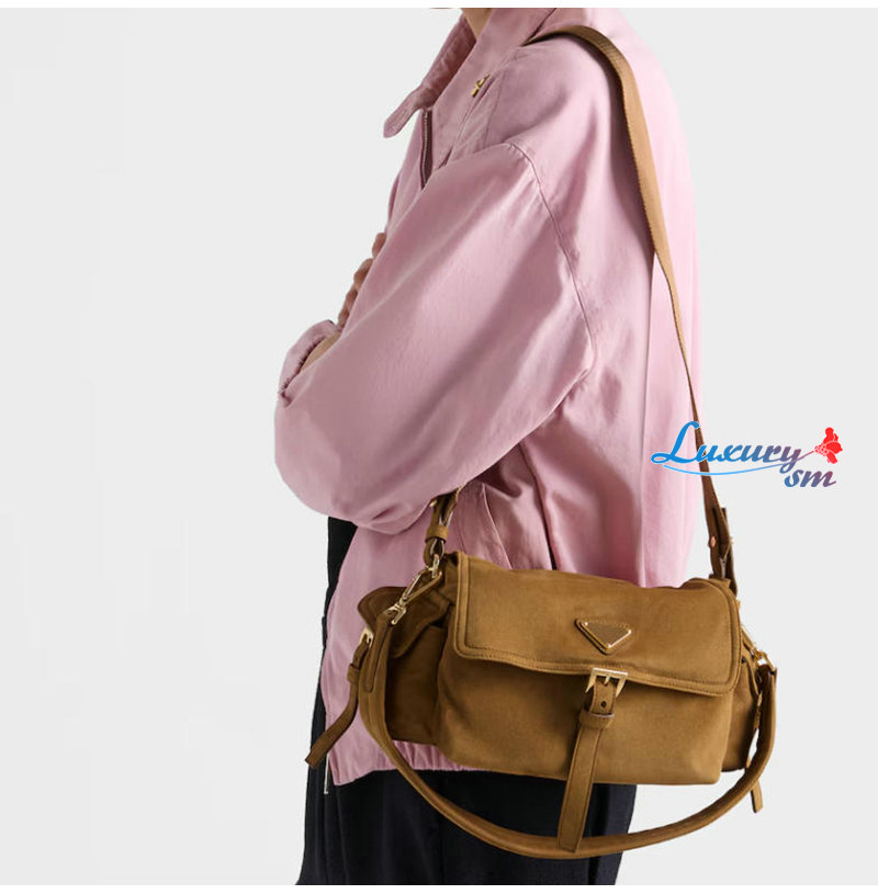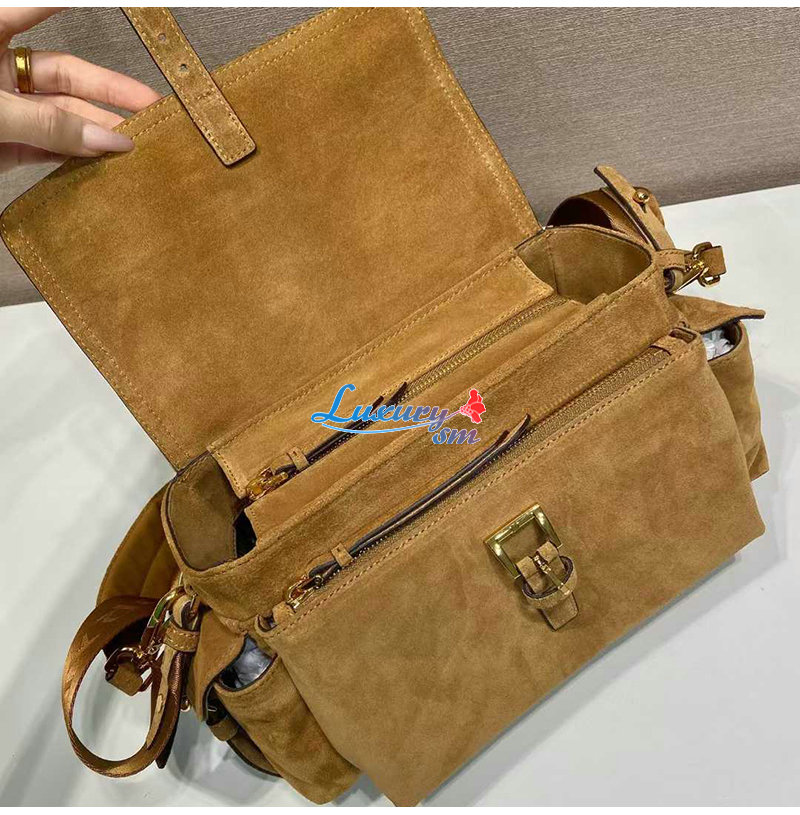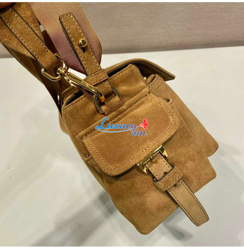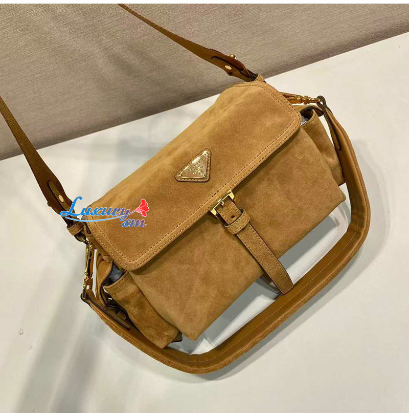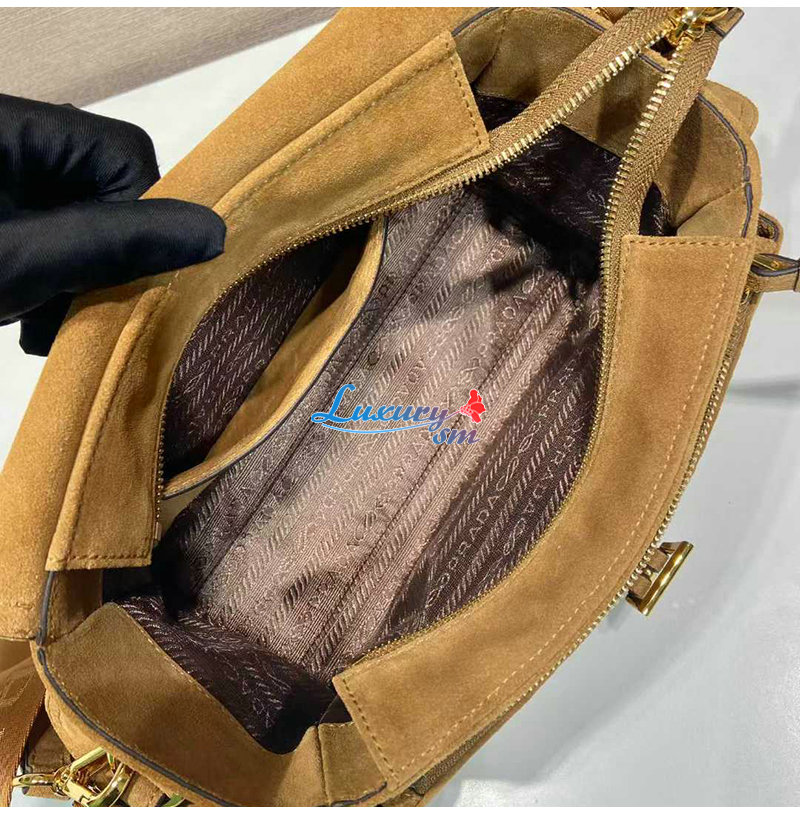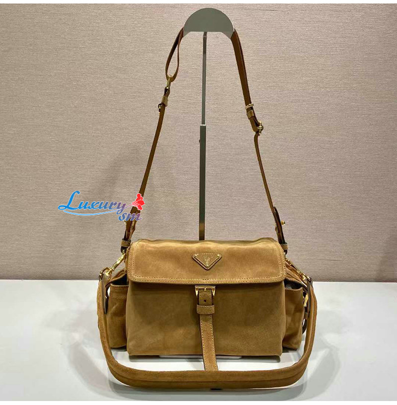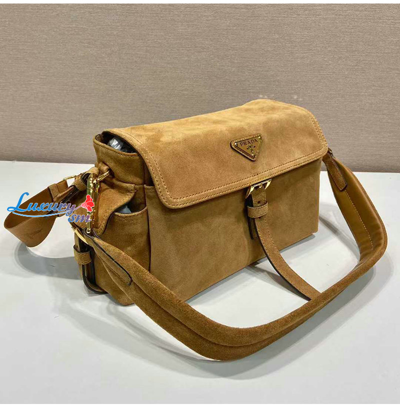 [스페셜오더]PRADA-1BD394 프라다 시나몬 익스플로어 미디엄 스웨이드 숄더 백