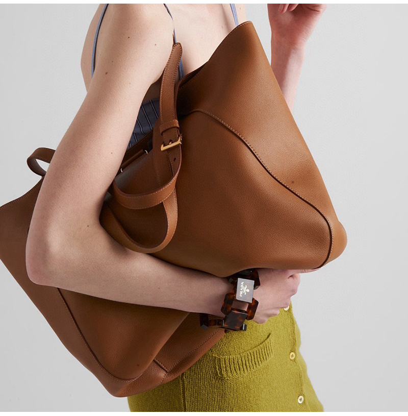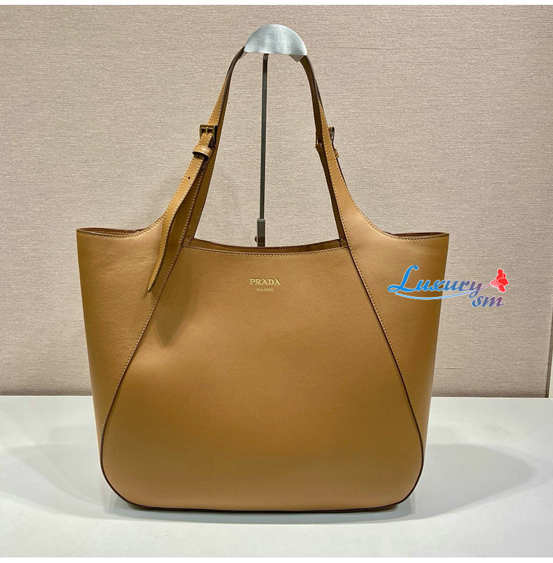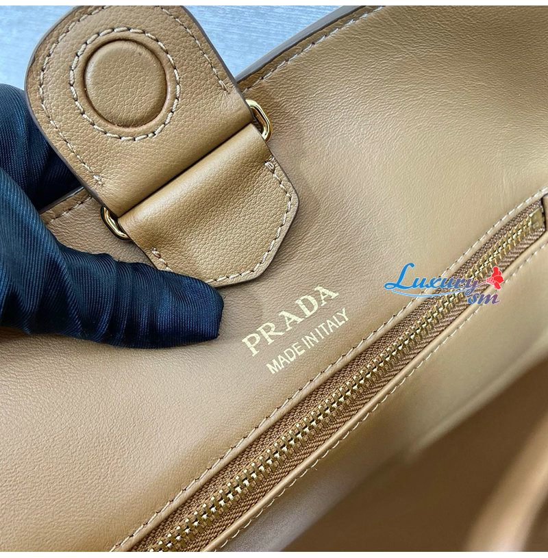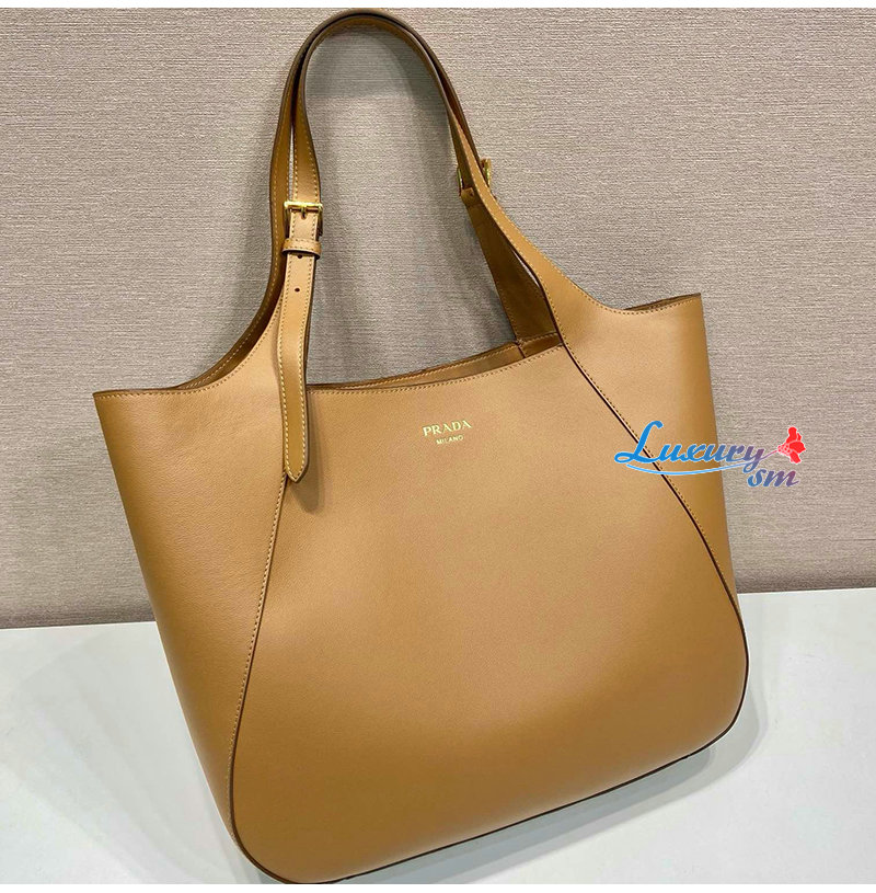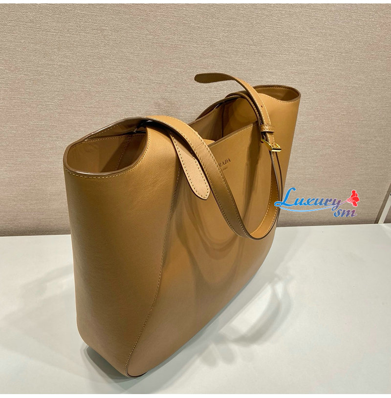 [스페셜오더]PRADA-1BG512 프라다 레더 토트백 레터링 로고 금장 브라운