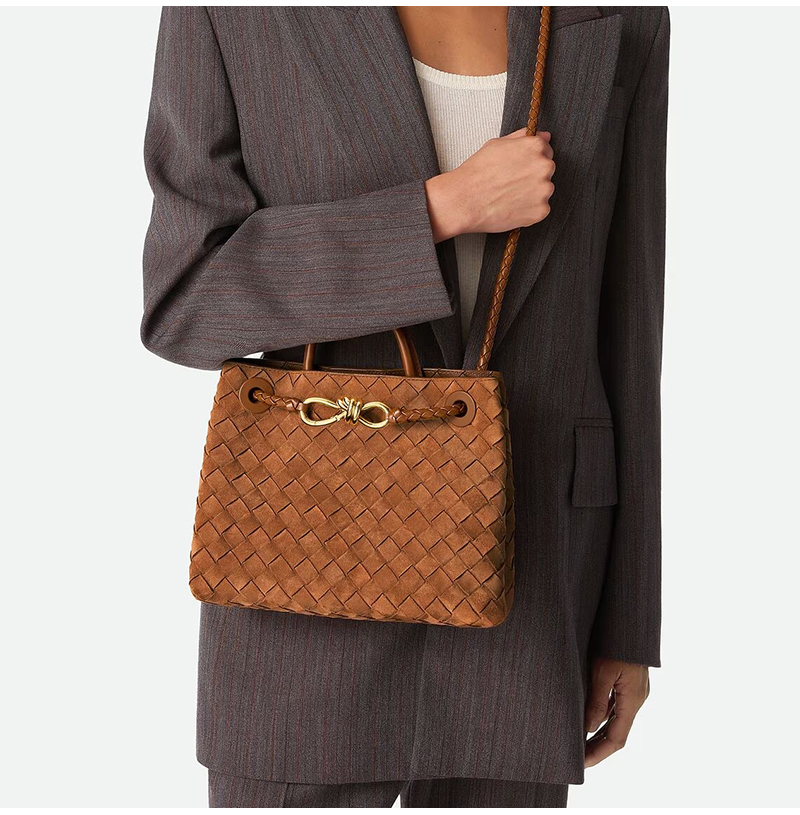 [스페셜오더]BOTTEGA VENETA-743568 보테가 베네타 앰버 스웨이드 안디아모 스몰 탑 핸들 백 25CM(766014 동일제품)