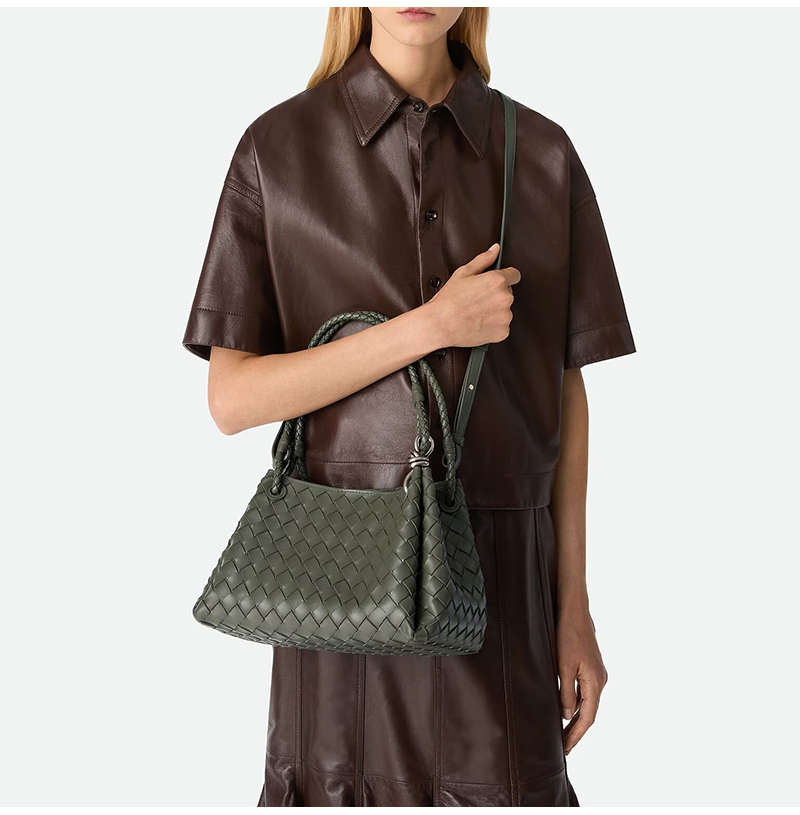 갖춘 유연한 인트레치아토 가죽 소재의 숄더 백.
