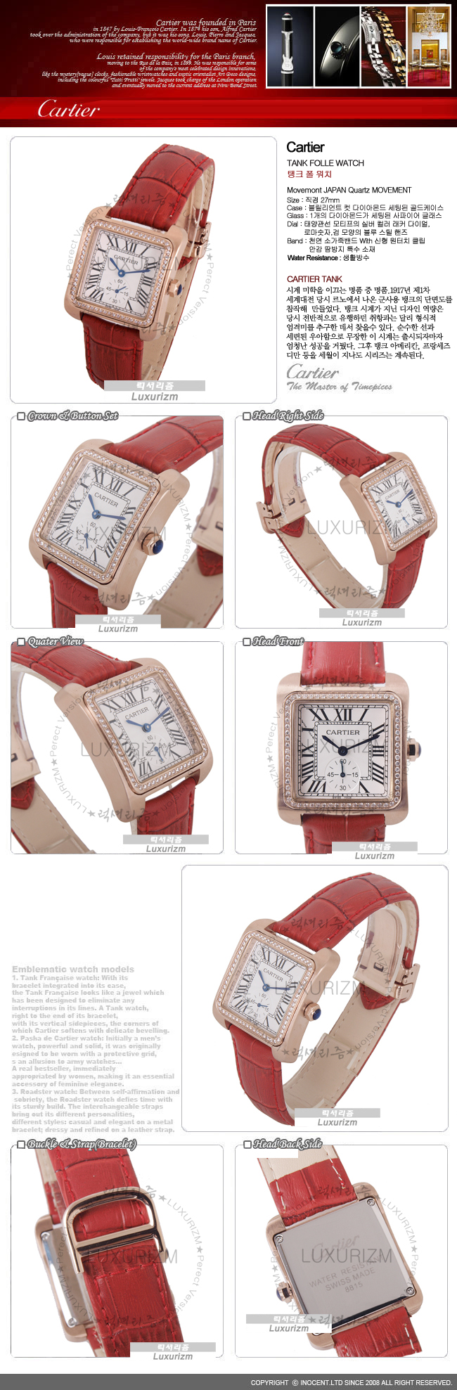 CARTIER-96238 탱크 화이트다이얼 큐빅 로즈골드 레드