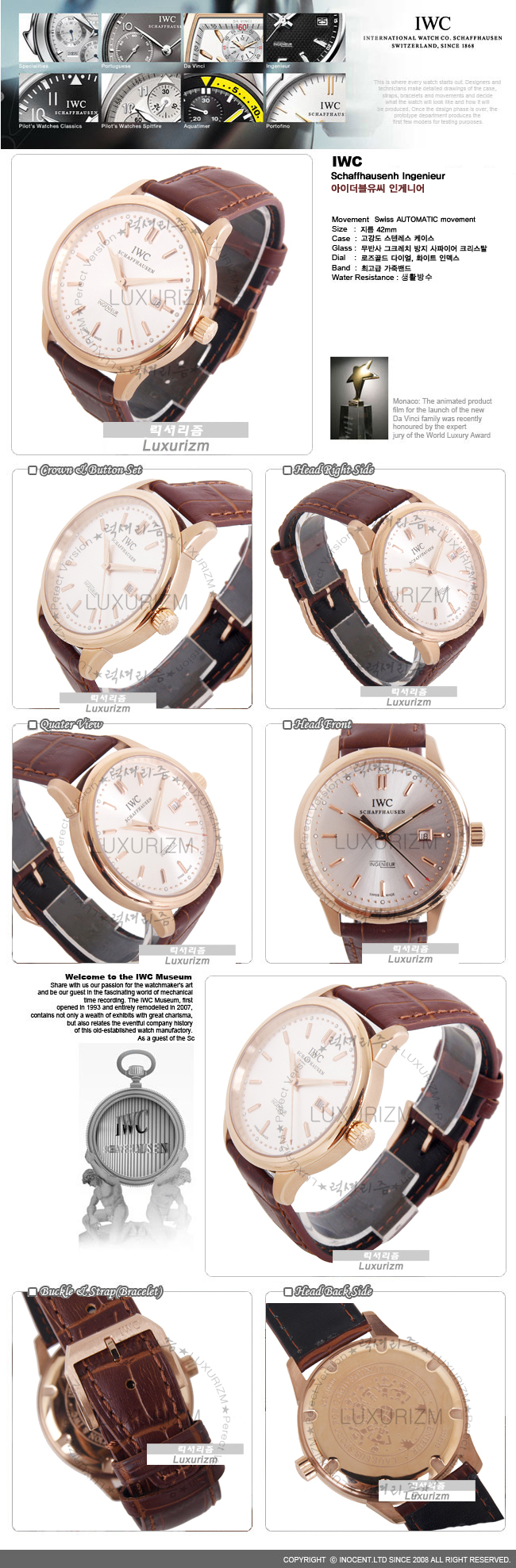 IWC-04275 남성용 시계 인게니어 로즈골드 화이트판