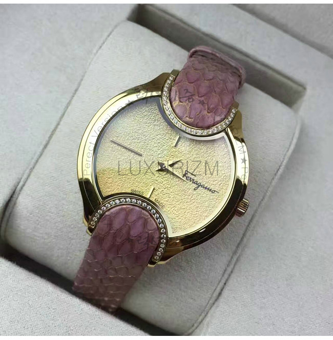 소량 입고된 페라가모 대표 컨셉인 간치니라인에 큐빅을셋팅한 최신상 여성용 시계 입니다.