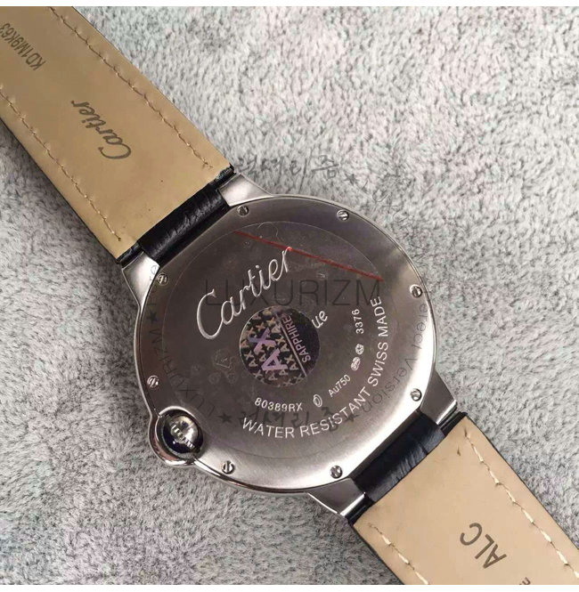 [스페셜오더]Cartier-까르띠에 발롱 블루 드 까르띠에 스틸 블랙다이얼 가죽스트랩 워치 42mm