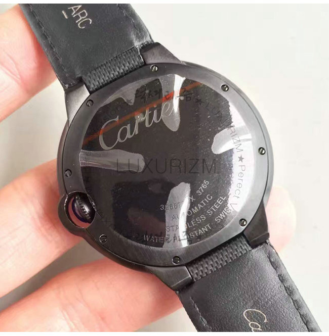 [스페셜오더]Cartier-까르띠에 발롱 블루 드 까르띠에 스틸 블랙다이얼 가죽스트랩 워치 42mm