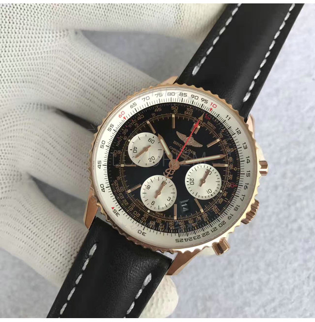 [스페셜오더]BREITLING-브라이틀링 내비타이머 레드 골드 블랙다이얼/블랙가죽스트랩 워치 43mm