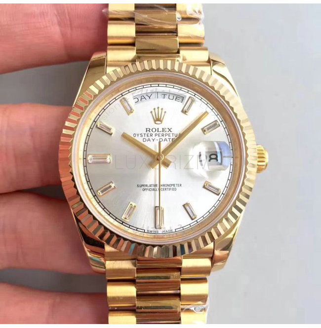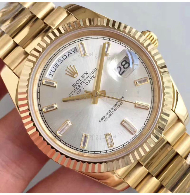 #ROLEX 롤렉스 오이스터 퍼페츄얼 데이-데이트 옐로우 골드 화이트 다이얼 36mm.