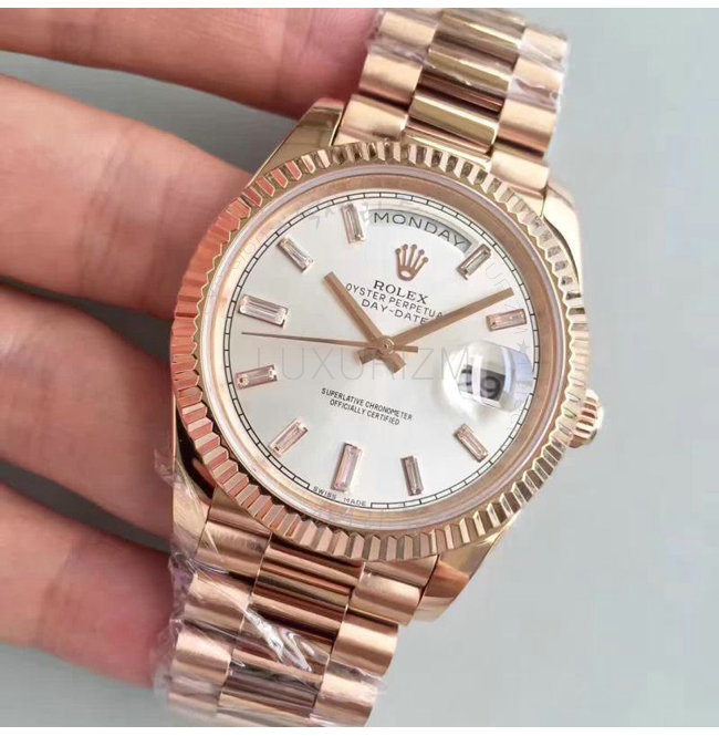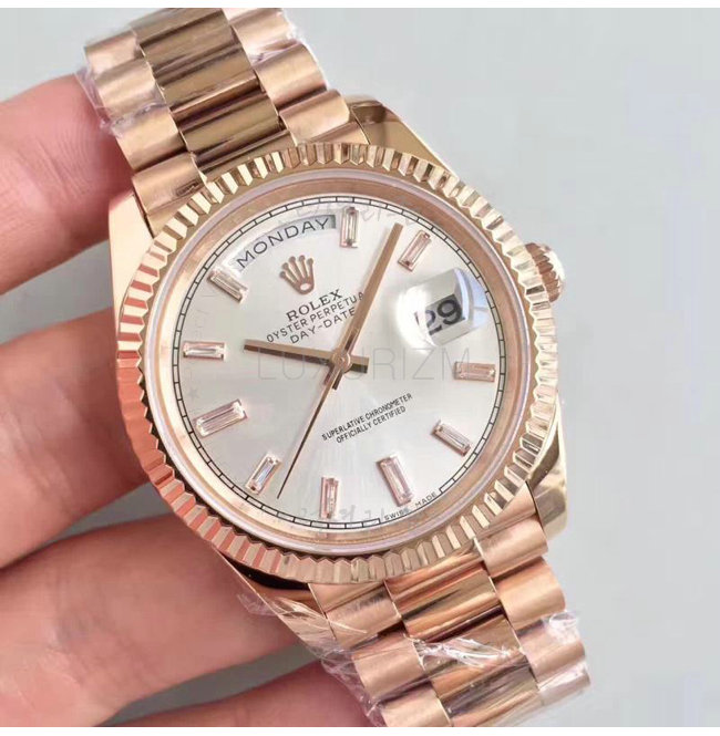 #ROLEX 오이스터 퍼페츄얼 Day-Date 데이-데이트 에버로즈 골드 선더스트 다이얼 40mm.