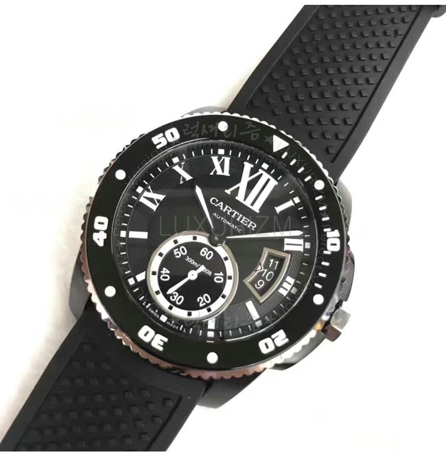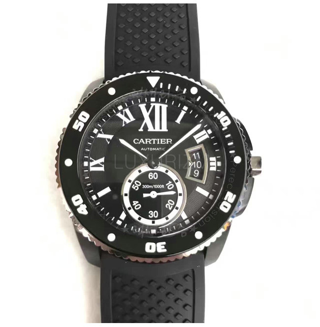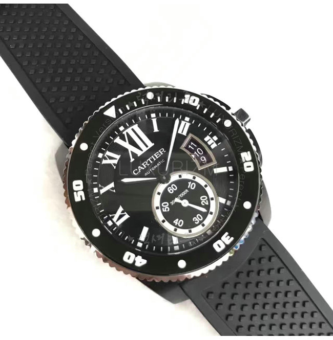칼리브 드 까르띠에 다이버 워치는 진정한 다이버 시계입니다. 방수기능 러버스트랩