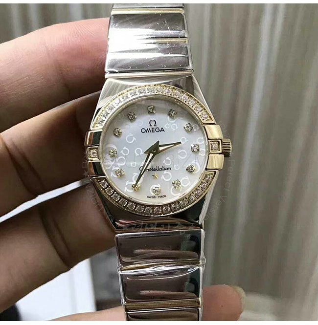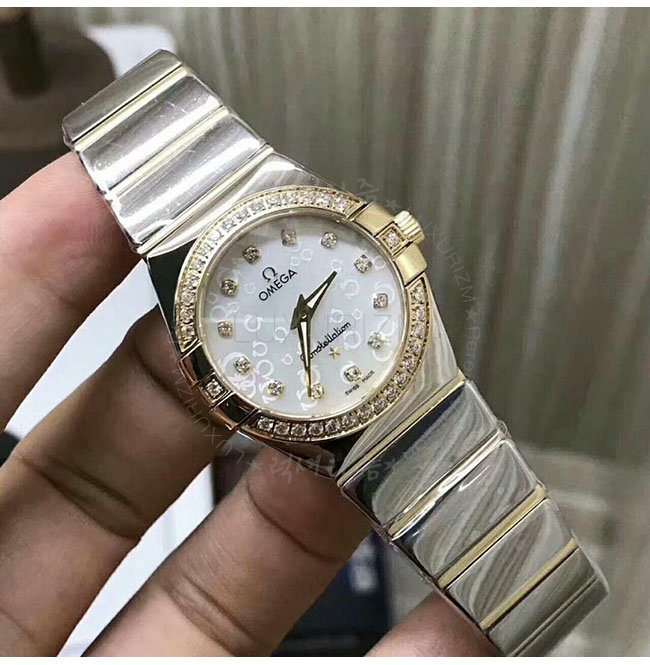 -커스텀급 오메가 컨스텔레이션 쿼츠 옐로우골드 스틸 워치카톡 HKLUXURIZM