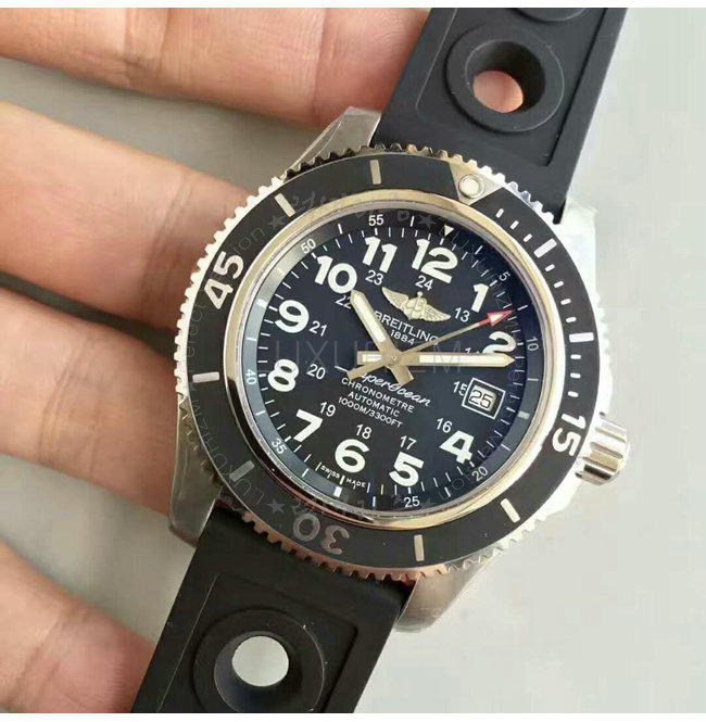 [스페셜오더]BREITLING-브라이틀링 슈퍼오션 II 스틸 블랙다이얼 워치 44mm