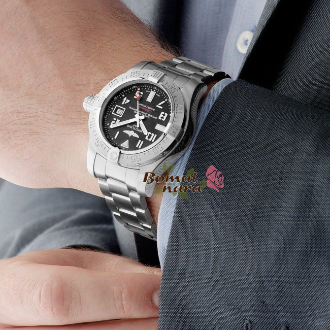[스페셜오더]BREITLING-브라이틀링 어밴져 II GMT 블랙 스틸 블랙다이얼 워치 43mm