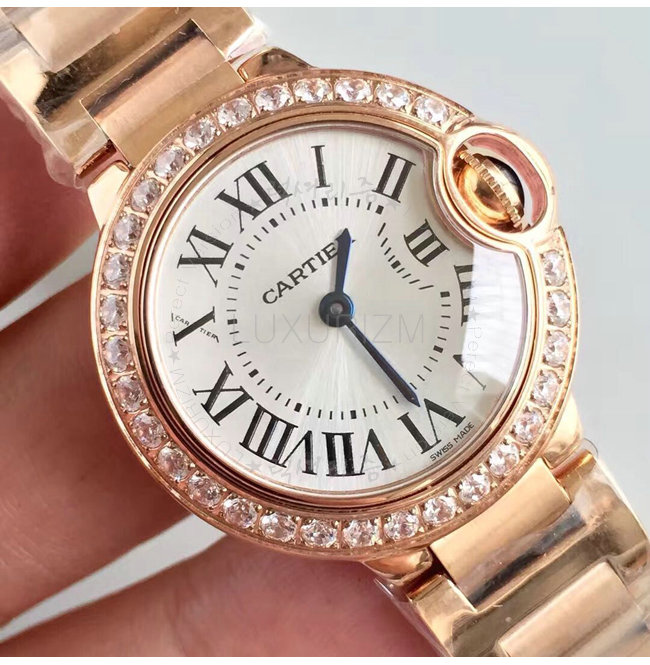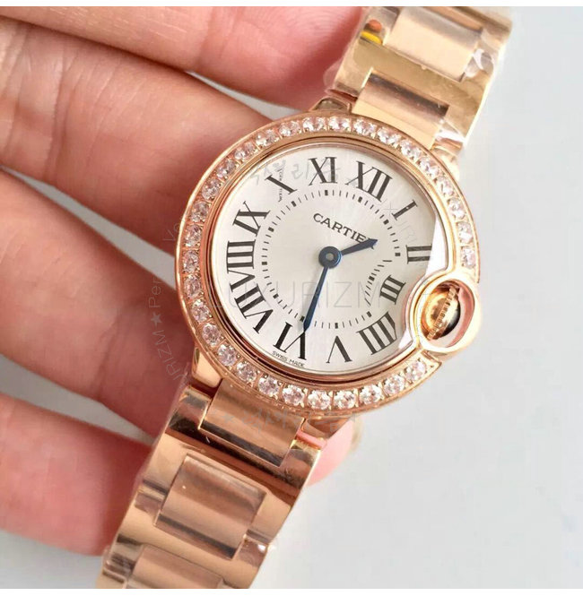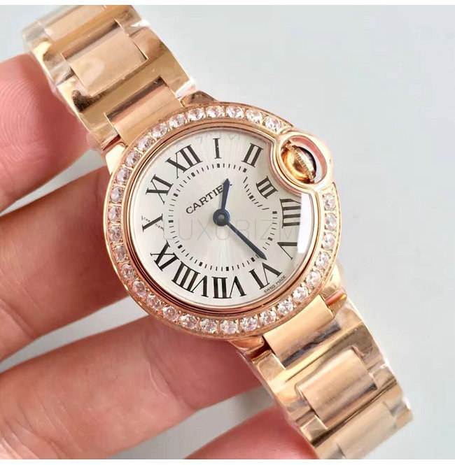 [스페셜오더]Cartier-WJBB0015 까르띠에 발롱 블루 드 쿼츠 다이아몬드 핑크 골드 브레이슬릿 레이디스 워치 28mm