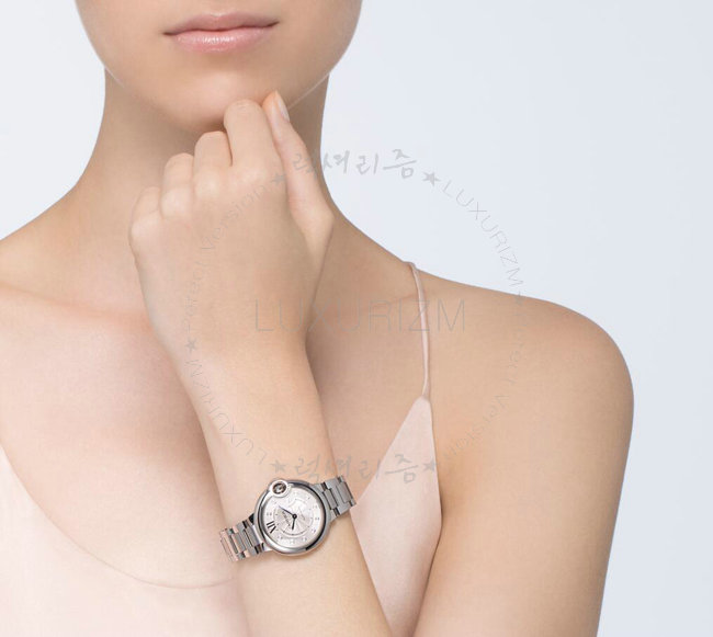 브레이슬릿이 돋보이는 발롱 블루 드 시계는 까르띠에 시계 컬렉션에 당당히 자리잡았습니다.
