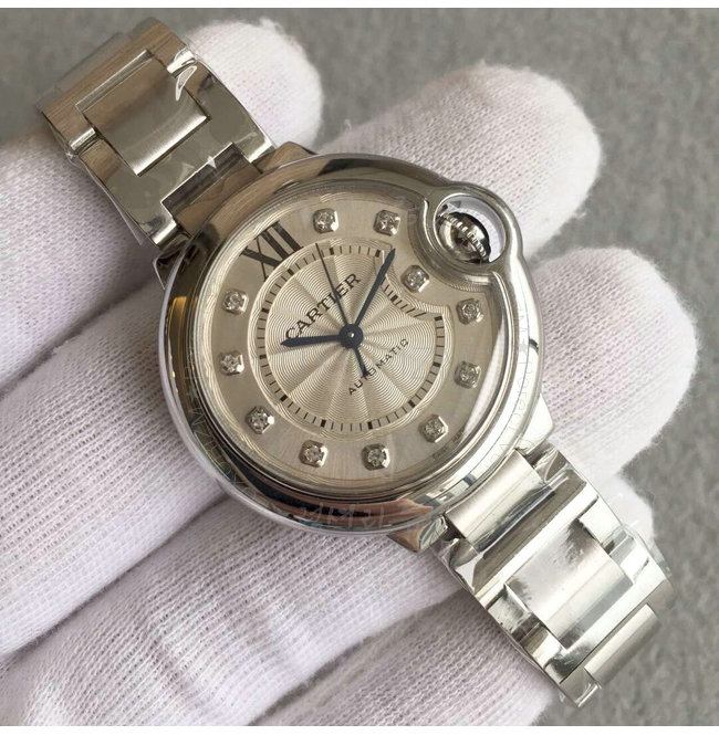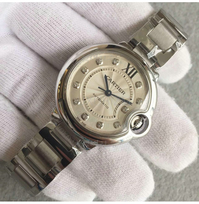 [스페셜오더]Cartier-W4BB0009 까르띠에 발롱 블루 드 오토매틱 다이아몬드 스틸 레이디스 워치 33mm