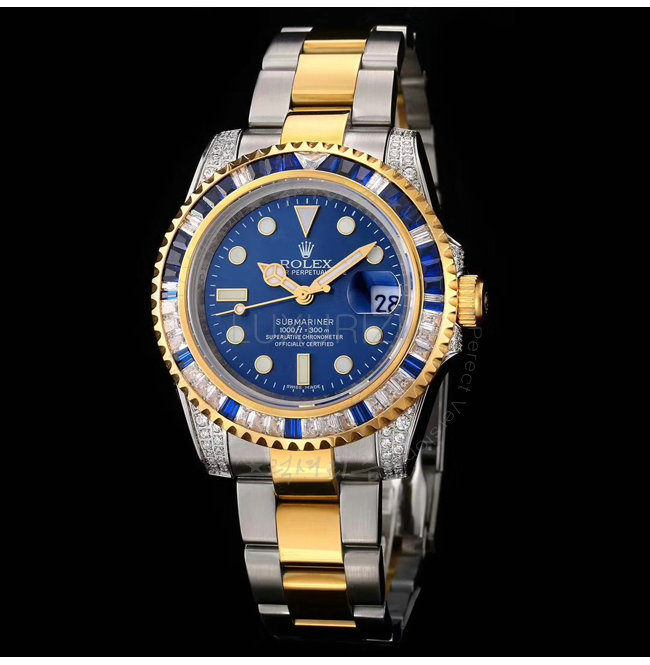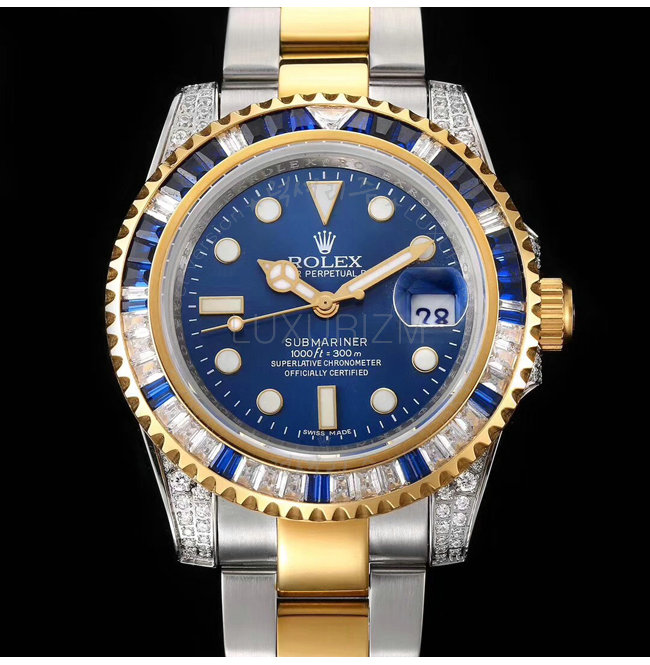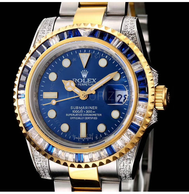 [스페셜오더]ROLEX-1888 롤렉스 오이스터 퍼페츄얼 서브 마리너 로즈 골드 블루 사파이어 다이아 블루 다이얼 40mm