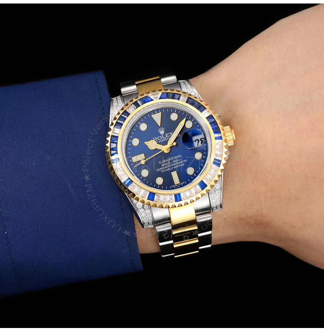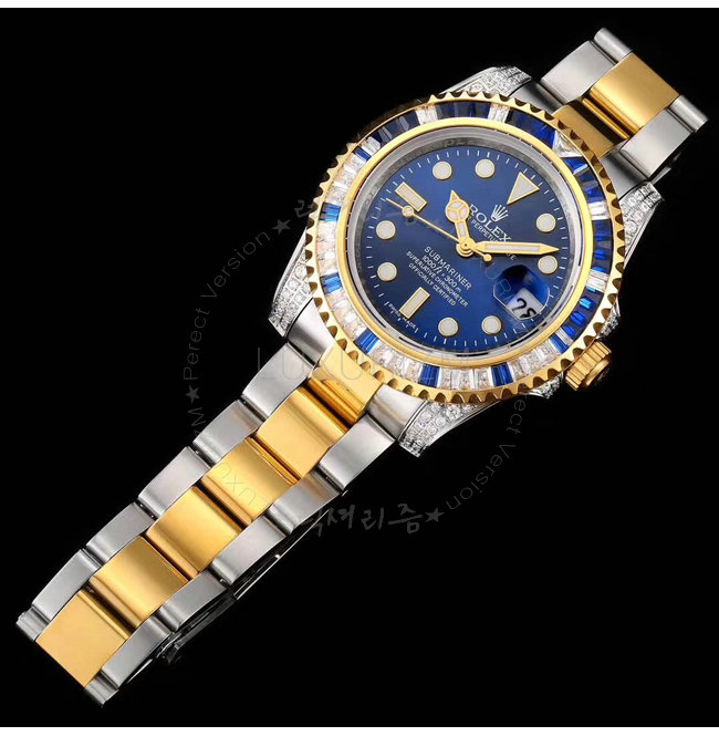 [스페셜오더]ROLEX-1888 롤렉스 오이스터 퍼페츄얼 서브 마리너 옐로우 골드 블루 사파이어 베젤 블루 다이얼 스틸 워치 40mm