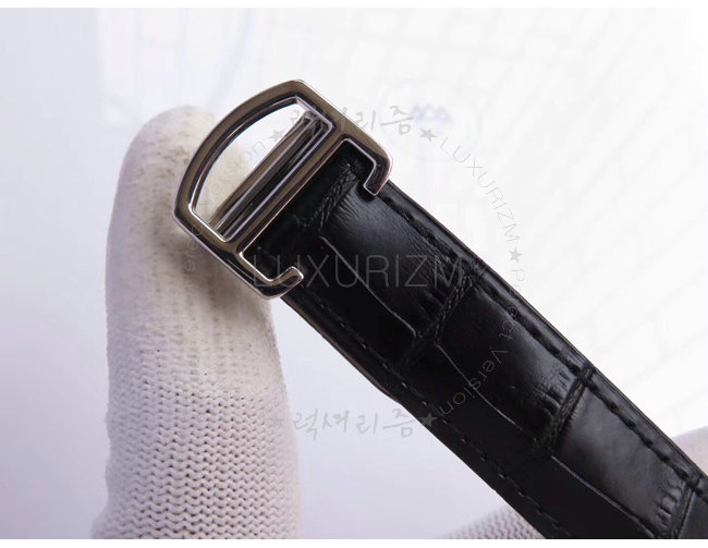 -글래스와 케이스백 앨리게이터 가죽스트랩 조절가능한 스틸 더블 디플로이언트 버클.