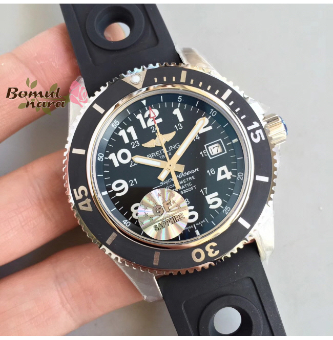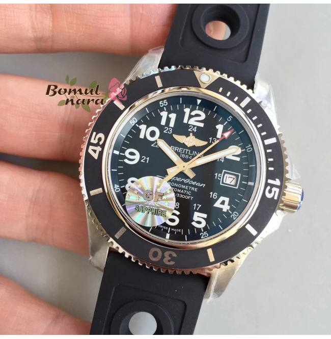 [스페셜오더]BREITLING-브라이틀링 슈퍼오션 블랙스틸 볼케이노 블랙 러버스트랩 시계44mm