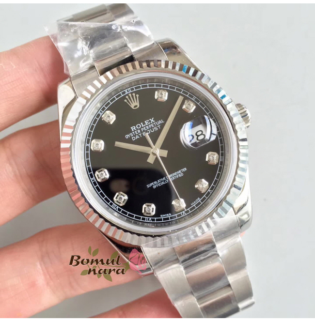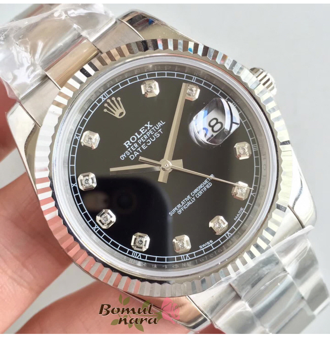 [스페셜오더]ROLEX-롤렉스 데이트저스트 데이트 스틸 다이아 인덱스 블랙다이얼 시계41mm