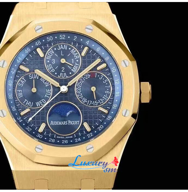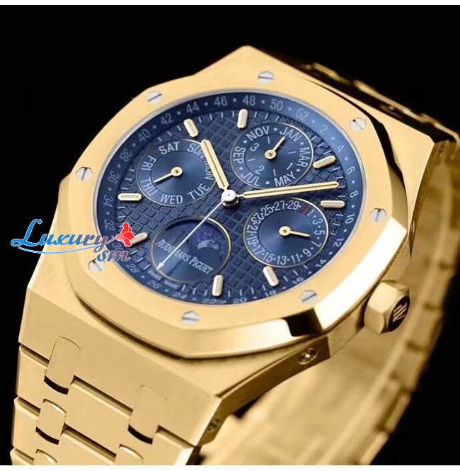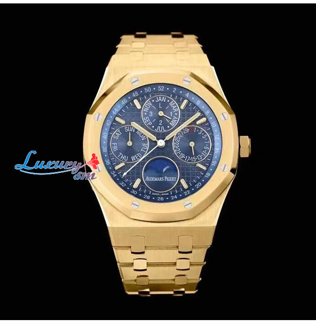 [스페셜오더]Audemars Piguet-오데마 피게 로얄 오크 퍼페츄얼 캘린더 옐로우 골드 블루 시계 41mm