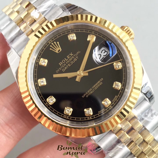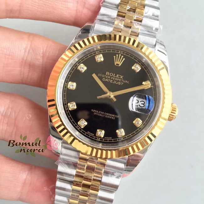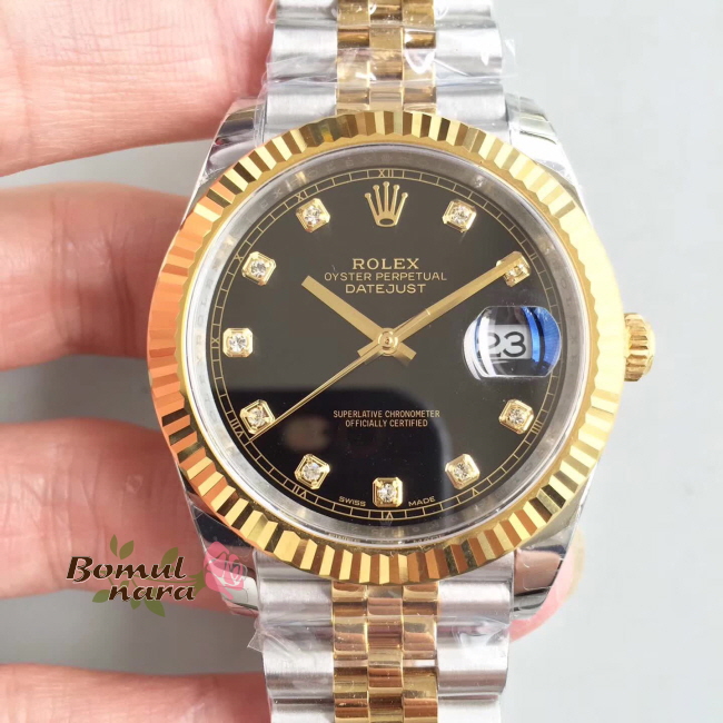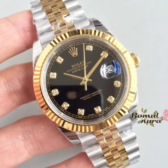 [스페셜오더]ROLEX-롤렉스 데이트저스트 데이트 다이아몬드 옐로우 골드 스틸 블랙 콤비시계 41mm