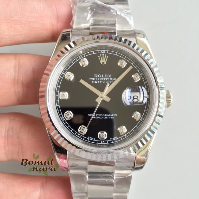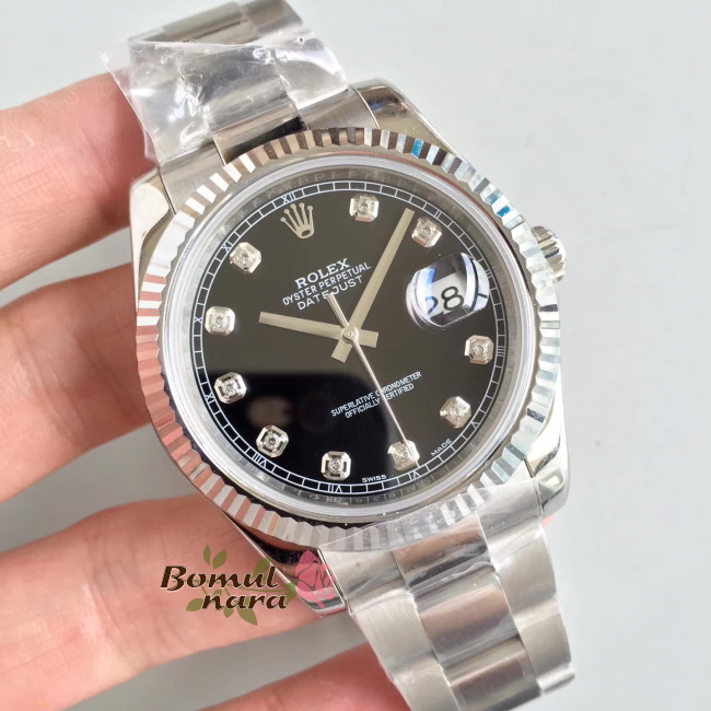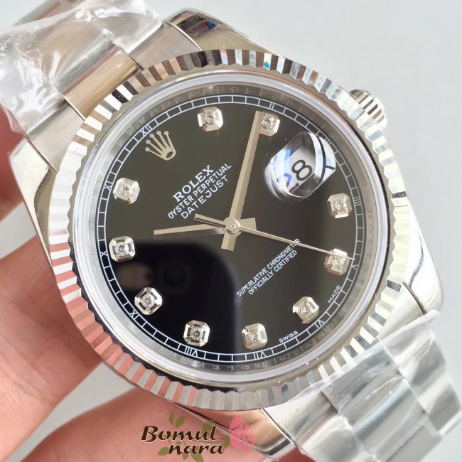 [스페셜오더]ROLEX-롤렉스 데이트저스트 데이트 스틸 다이아 인덱스 블랙다이얼 시계41mm