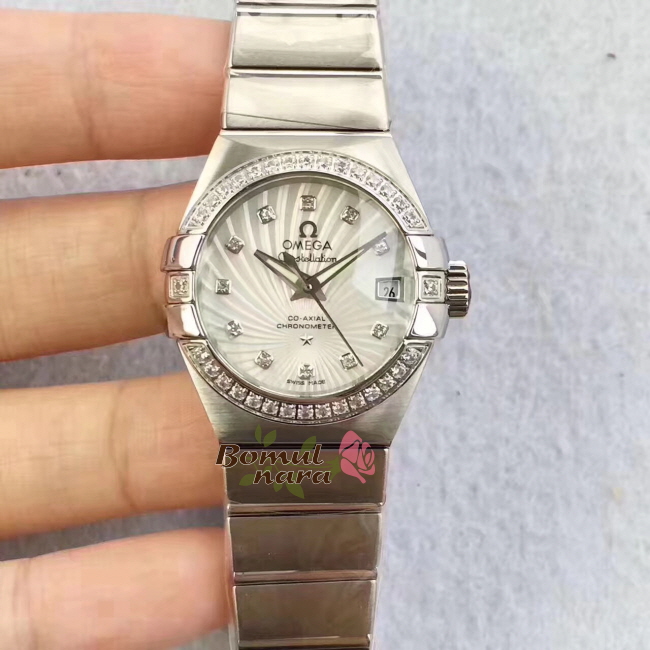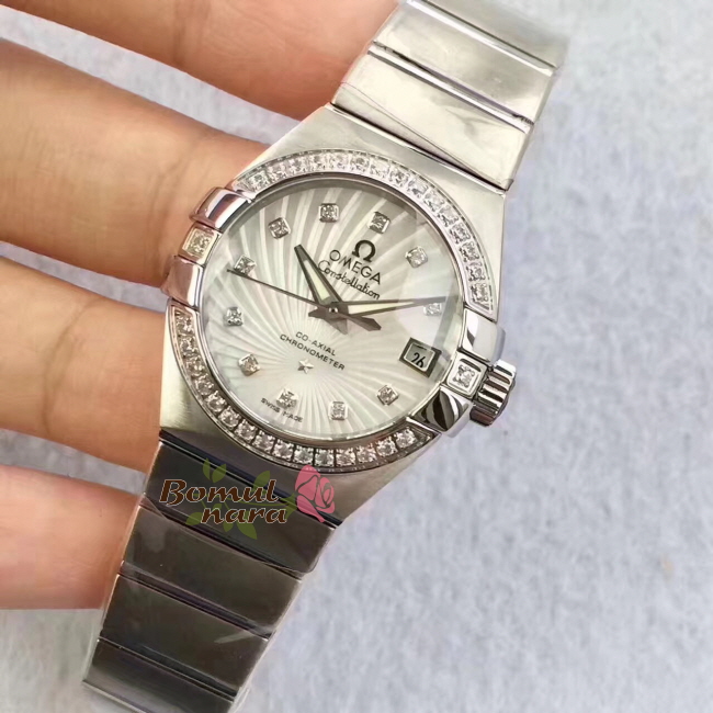[스페셜오더]OMEGA-오메가 컨스텔레이션 다이아 베젤 인덱스 스틸 화이트 여성시계 27mm