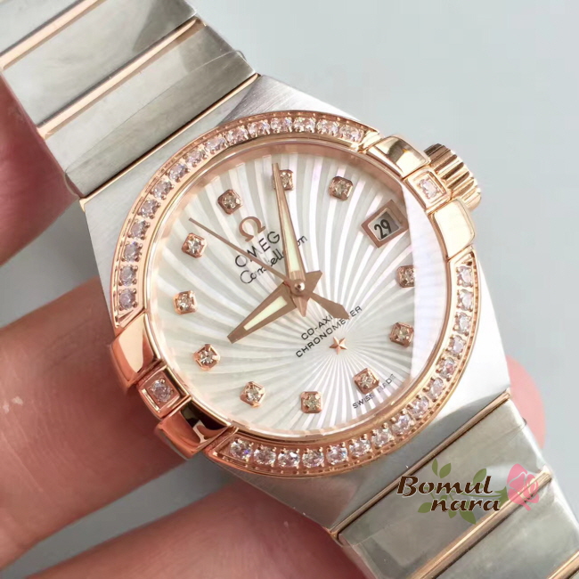 [스페셜오더]OMEGA-오메가 컨스텔레이션 레드 골드 다이아 인덱스 베젤 실버 워치 38mm