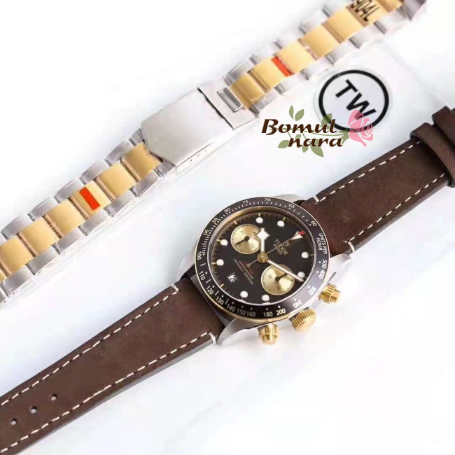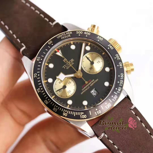 [스페셜오더]TUDOR-튜더 헤리티지 블랙 베이 크로노 스틸 레더스트랩 시계 41mm