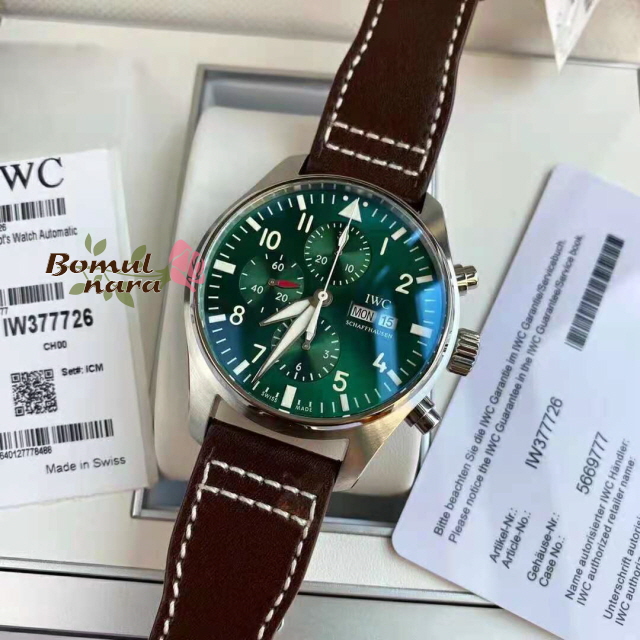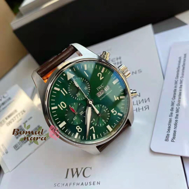 [스페셜오더]IWC-IW377726 아이더블유씨 파일럿 워치 크로노그래프 레이싱 그린 시계 43mm