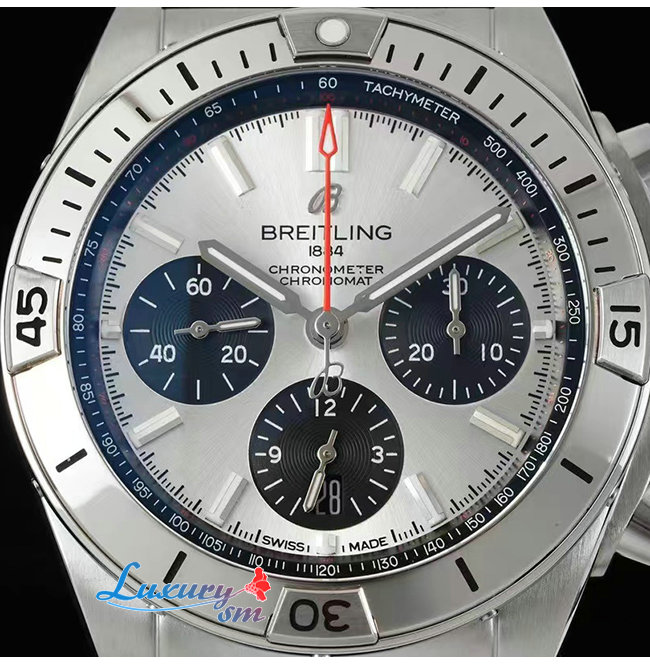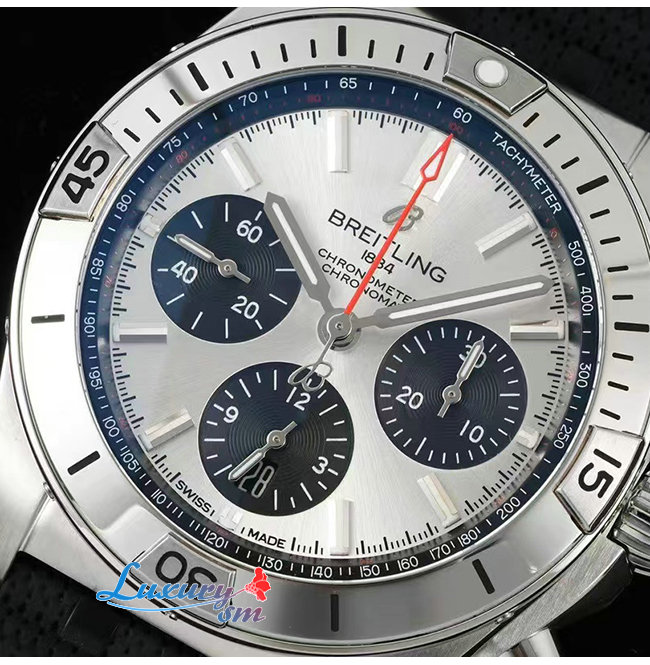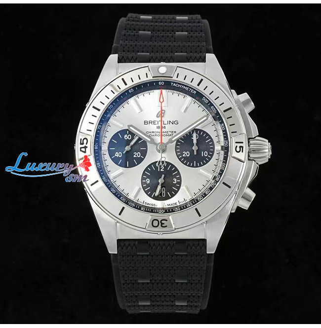 [스페셜오더]BREITLING-브라이틀링 크로노맷 B01 크로노그래프 러버 실버 다이얼 유틸리티시계 42mm