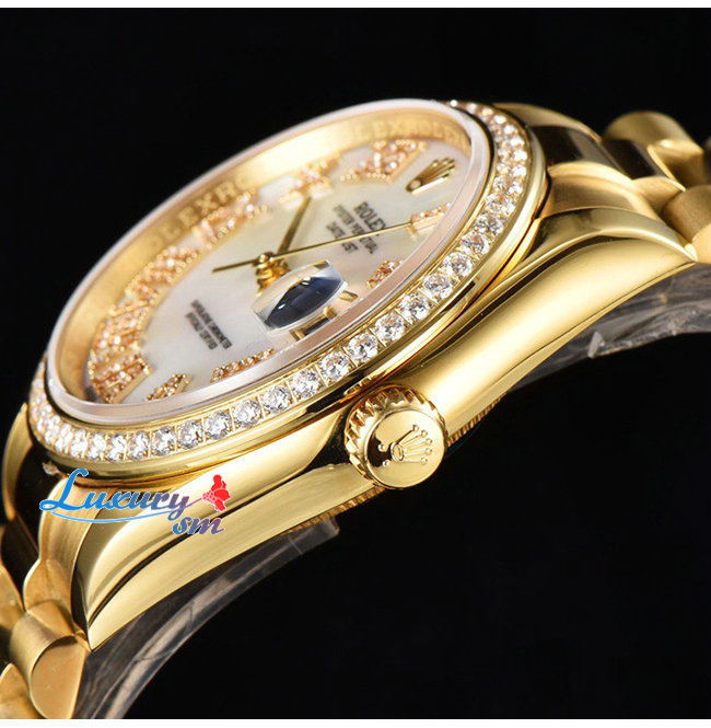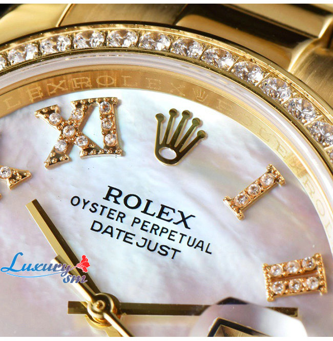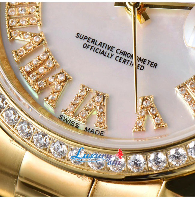 ★[正品완벽재현]ROLEX-롤렉스 데이트저스트 옐로우 골드 904L스틸 다이아 인덱스 샴페인 다이얼 여성워치 31mm