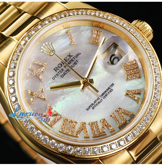 [스페셜오더]ROLEX-롤렉스 데이트저스트 다이아몬드 골드 실버 다이얼 클래식 시계 36mm
