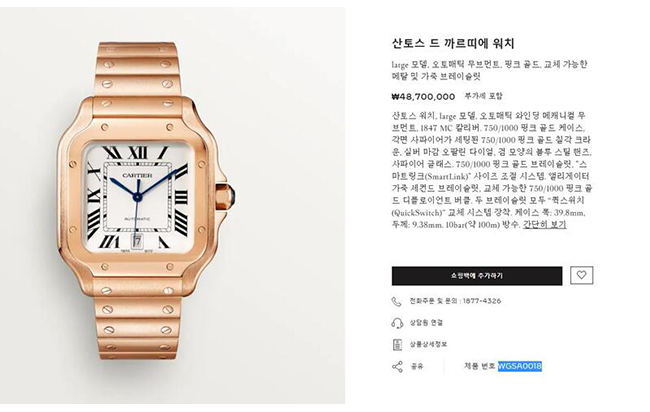 [스페셜오더]Cartier-W2SA0012 까르띠에 산토스 뒤몽 스틸 핑크 골드 베젤 스몰 실버 다이얼 여성용시계 38mm 가격 : 580,000원