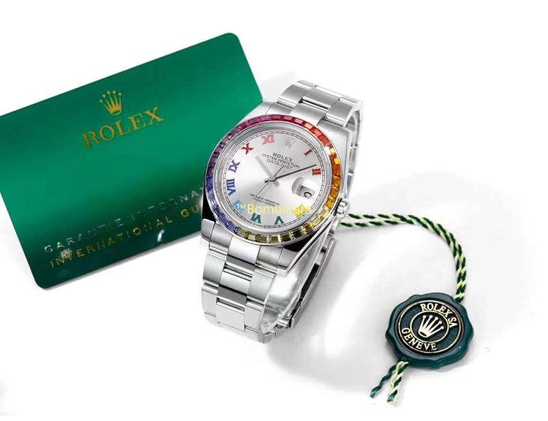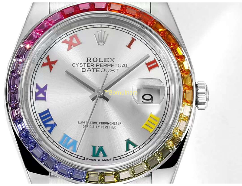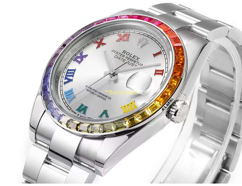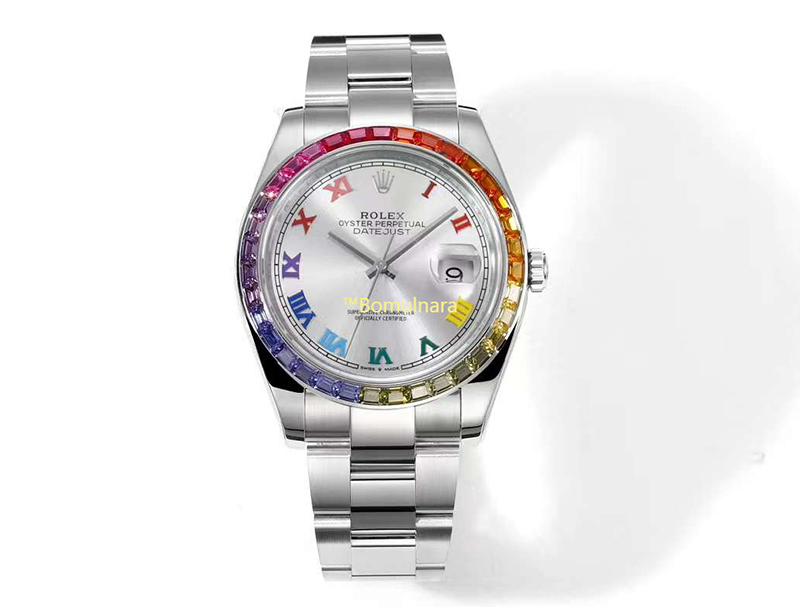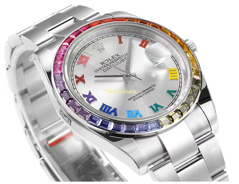 [스페셜오더][Jvs Factory]ROLEX-롤렉스 데이-데이트 레인보우 사파이어 베젤 904L 스틸 로마숫자 인덱스 시계 41mm