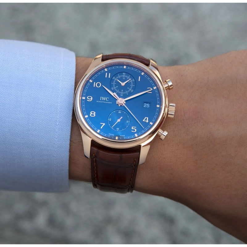 [스페셜오더]IWC-371480 아이더블유씨 포르투기저 크로노그래프 로즈 골드 블루다이얼 워치 41mm (뒷면누드모델) 가격 : 880,000원