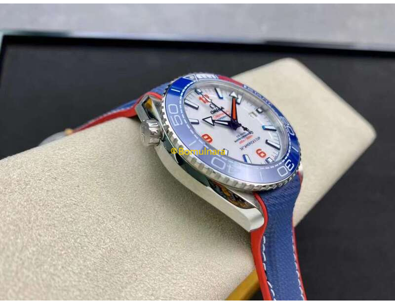 [VS]OMEGA-오메가 씨마스터 플래닛 오션 아메리카스 컵 에디션 43.5mm 904L 아메리카스 컵의 레드, 화이트, 블루 로고의 올드 머그 컬러에서 영감을 받아 탄생. *레퍼런스: 215.32.43.21.04.001 *기능: 시간, 분, 초, 날짜 표시창 *무브먼트: Cal.8900 오토매틱 무브먼트 *베젤: 양방향 회전 세라믹 베젤 *케이스: 904L 케이스 *브레슬릿: 러버 스트랩 *버클: 폴딩 클래스프 *크라운: 스크류-다운 *케이스 백: 블루 사파이어 케이스 백 *글래스: 돔형 사파이어 크리스탈 *파워 리저브: 약 48시간 *방수: 100m *제조사: VS Factory *기타: 2,021개 한정 제작 타임피스 Since2007최장수 홍콩명품온라인쇼핑몰by럭셔리즘