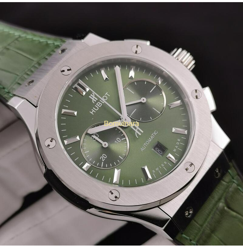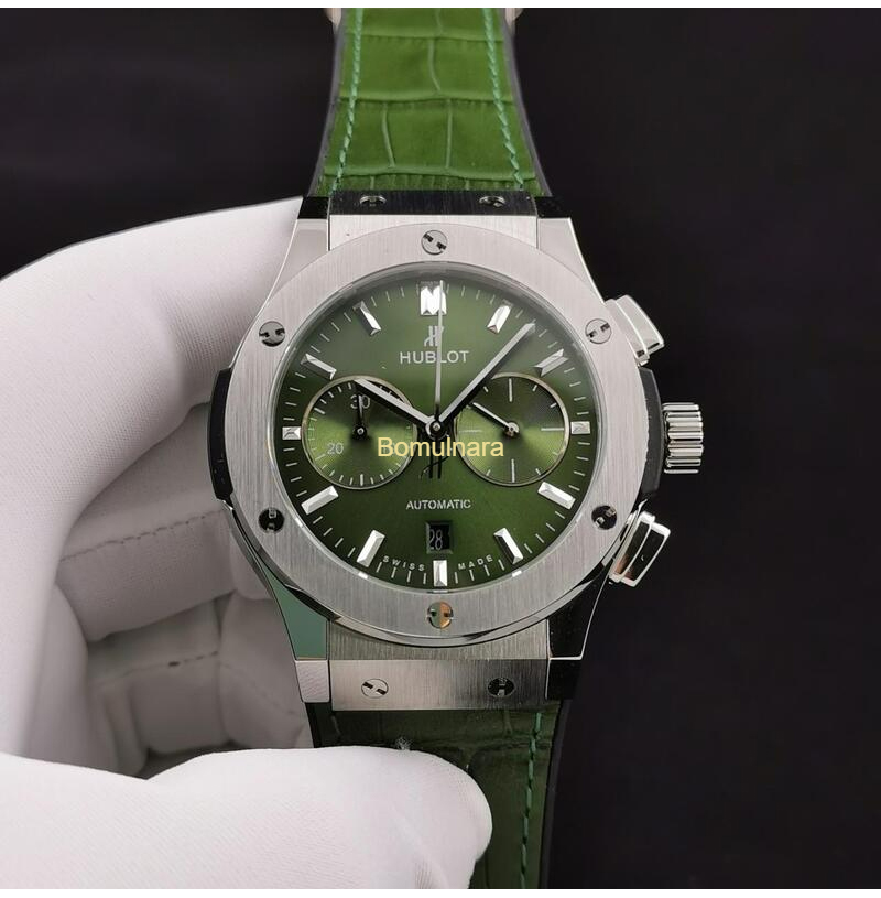 HUBLOT-위블로 클래식 퓨전 크로노그래프 스틸 그린 45mm *레퍼런스: 521.NX.8970.LR *기능: 시, 분, 초, 날짜 창, 크로노그래프 *무브먼트: HUB 7750 크로노그래프 무브먼트 *베젤: 316L 스테인레스 스틸 베젤 *케이스: 316L 스테인레스 스틸 케이스 *브레슬릿: 러버 및 가죽 스트랩 *버클: 디플로이언트 클래스프 *크라운: 스크류-인 *케이스 백: 투명 케이스백 *글래스: 사파이어 크리스탈 *방수: 약 50M *파워리저브: 약 42시간 *제조사: HB Factory 핫플!홍콩명품 가방,시계,의류,지갑,신발 NO1럭셔리즘