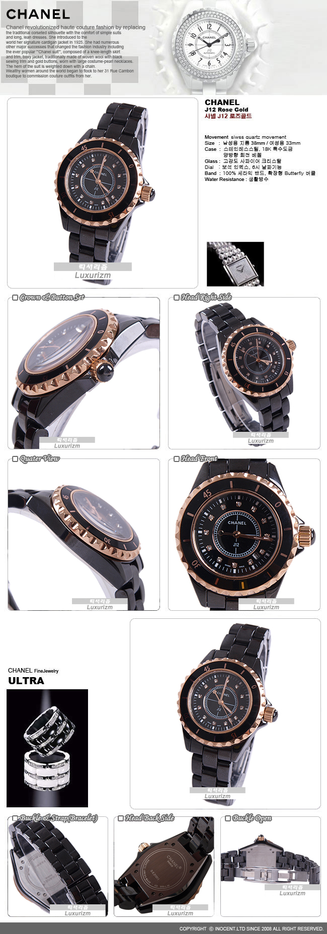 샤넬 j12 로즈골드 다이아 인덱스 블랙 (남여공용)