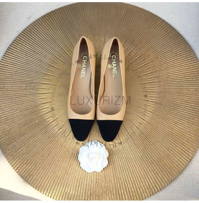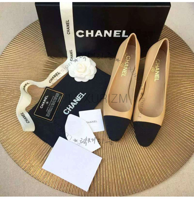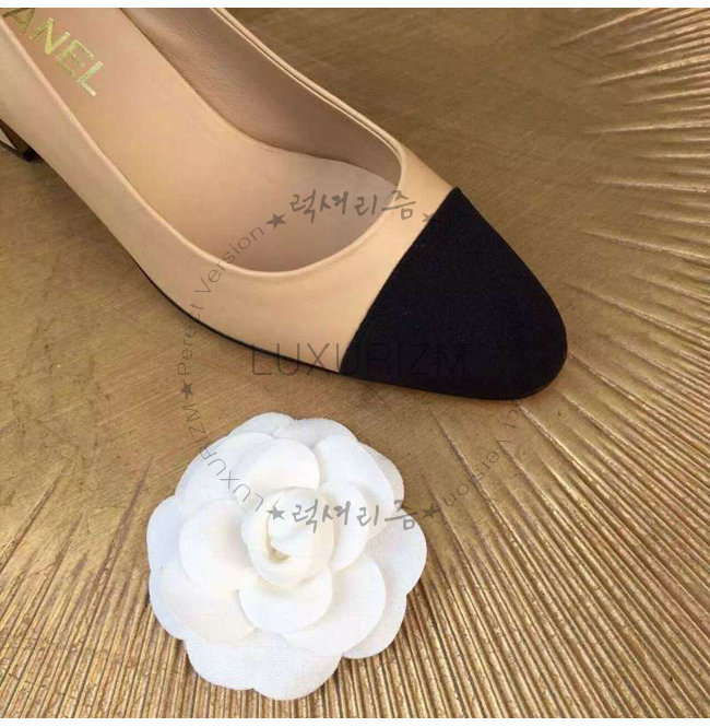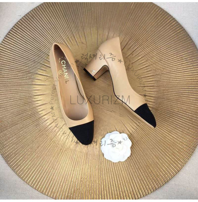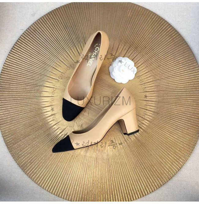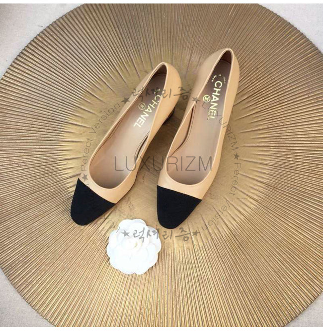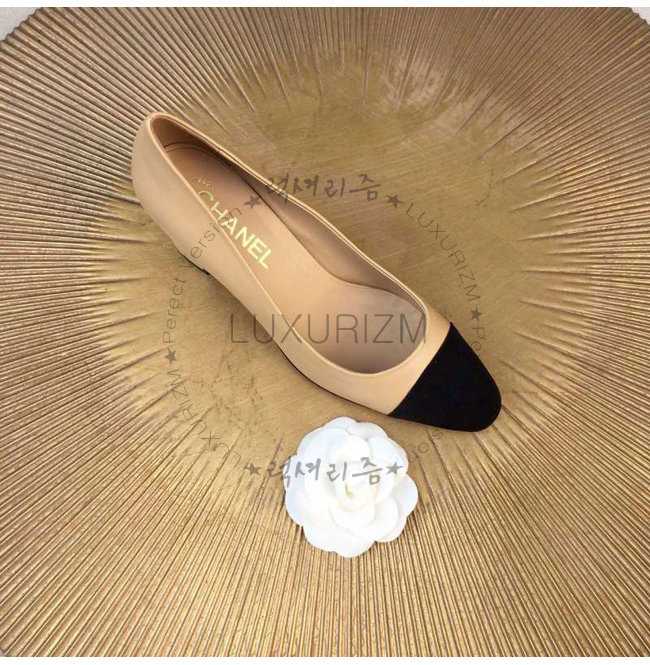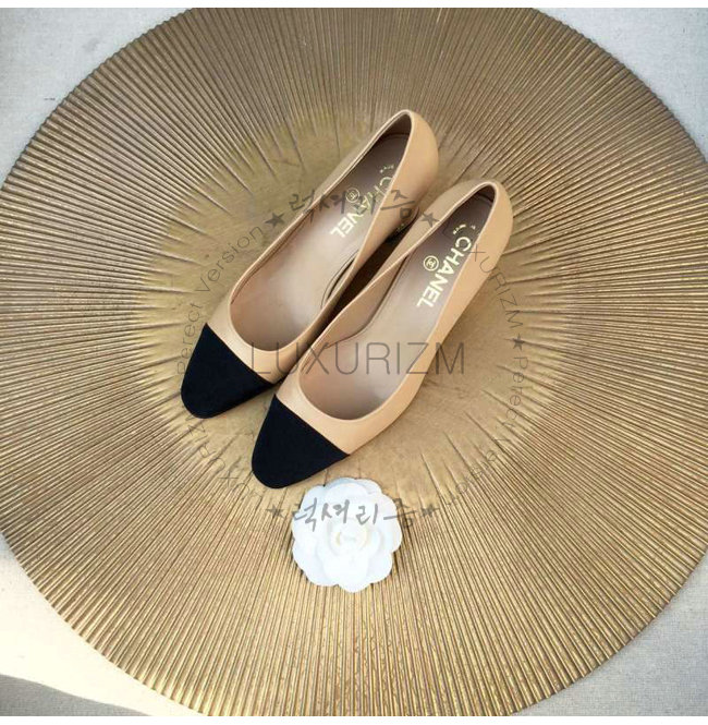 CHANEL-9057 샤넬 스웨이드 카프스킨 펌프스 블랙/베이지