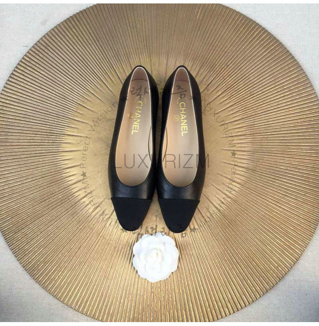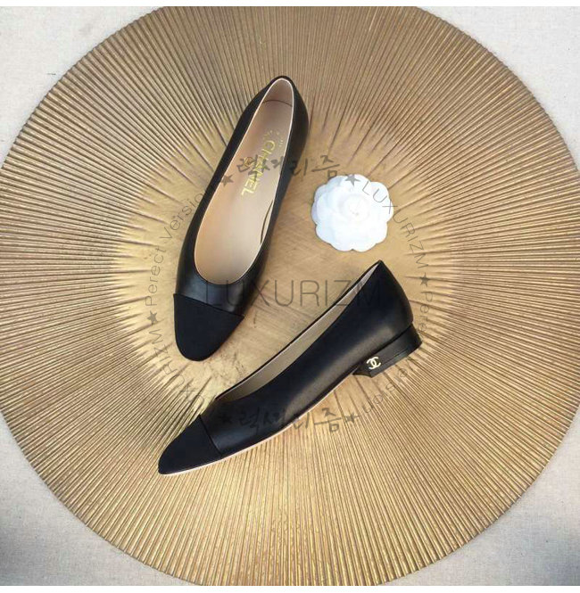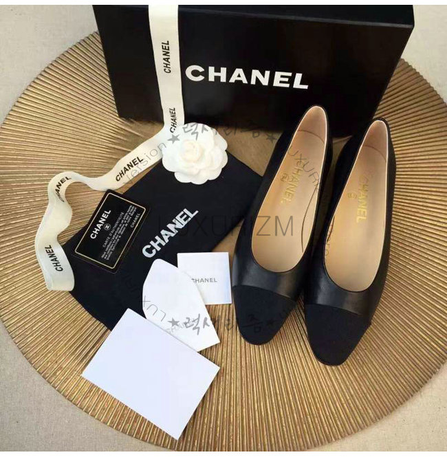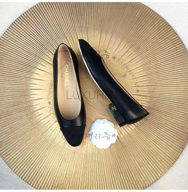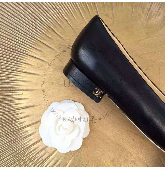 CHANEL-9057 샤넬 스웨이드 카프스킨 플랫 슈즈 블랙/베이지 가격 : 210,000원