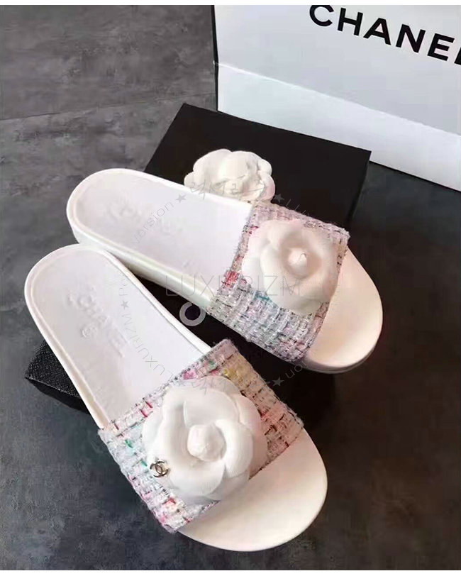 CHANEL-G32787 샤넬 화이트 트위드 그로그랭 뮬 여성용