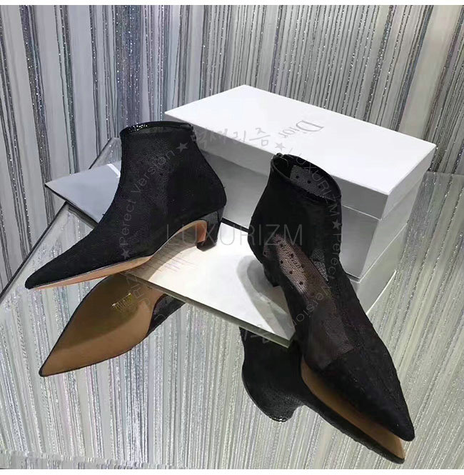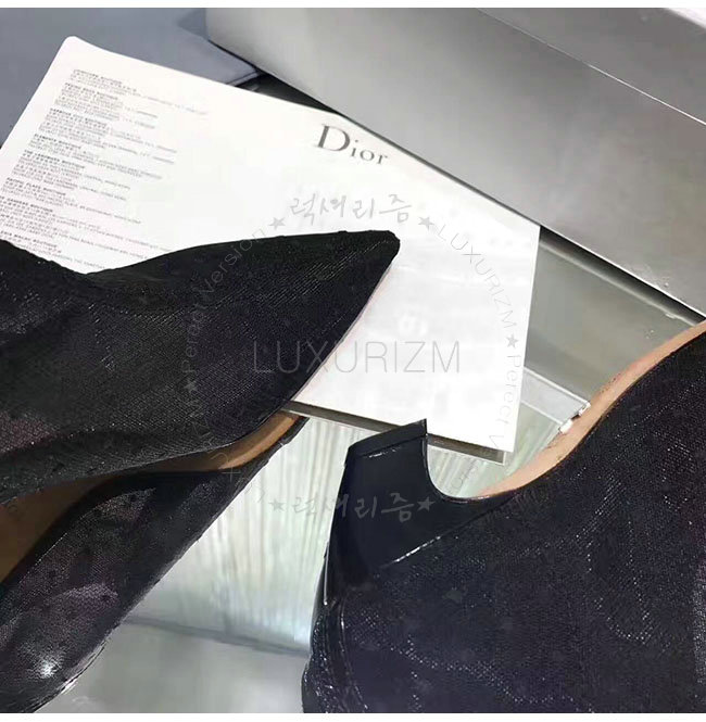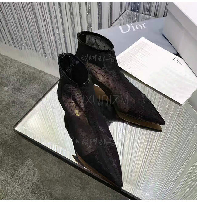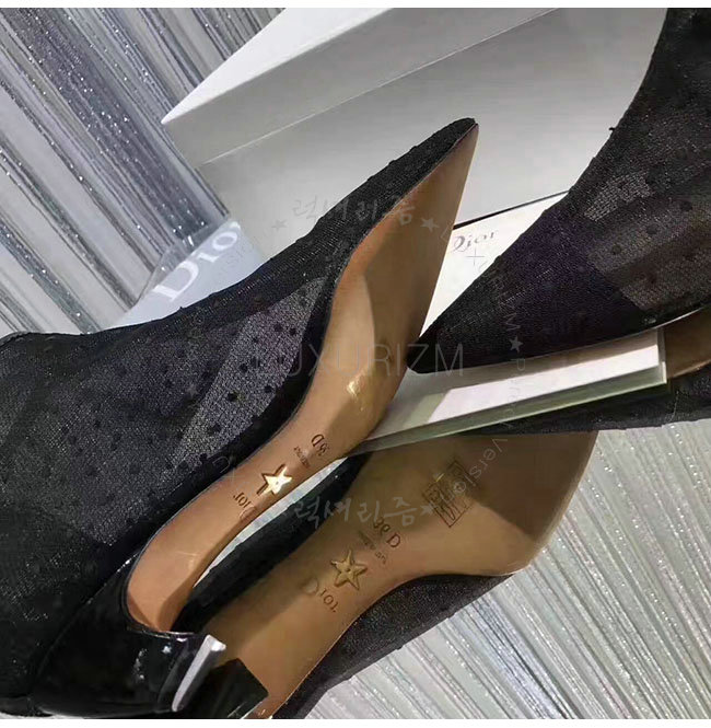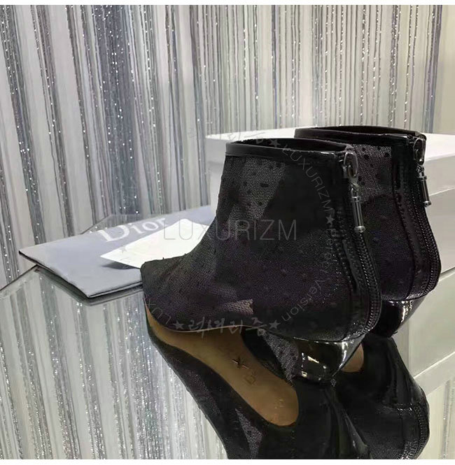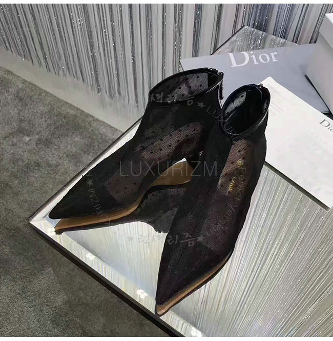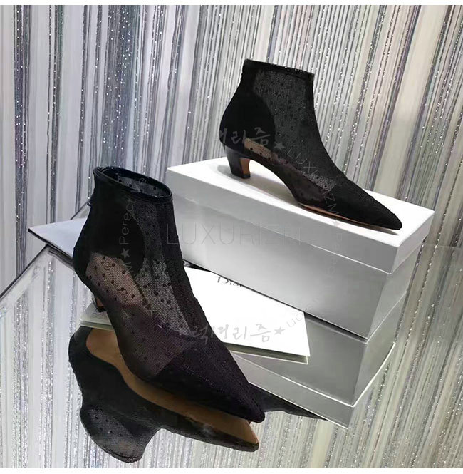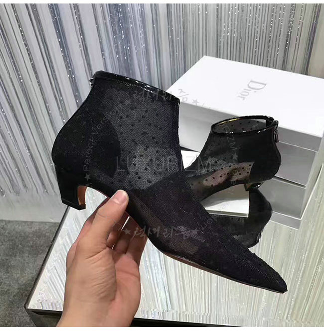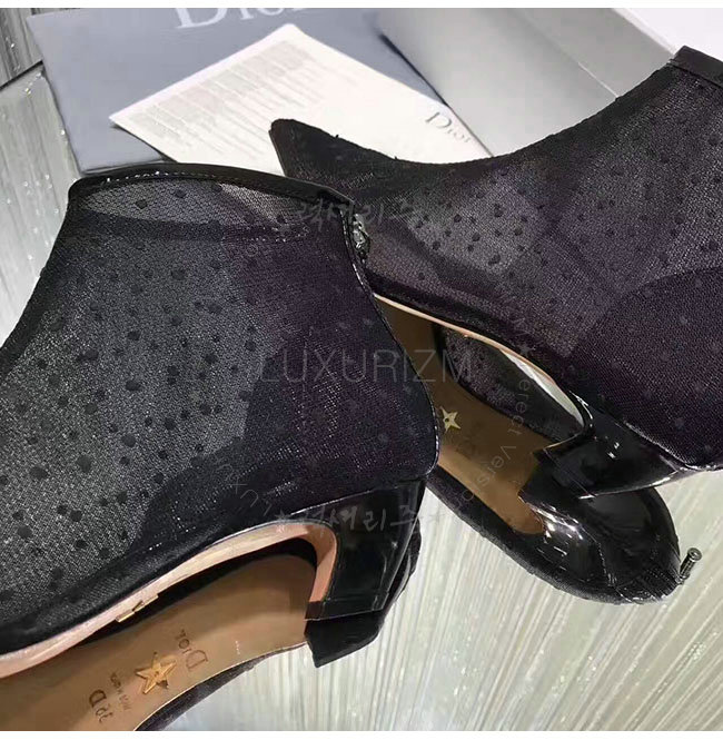 DIOR-172PMS 디올 블랙 도티드 스위스 튤 앵클 부츠 여성용