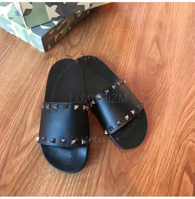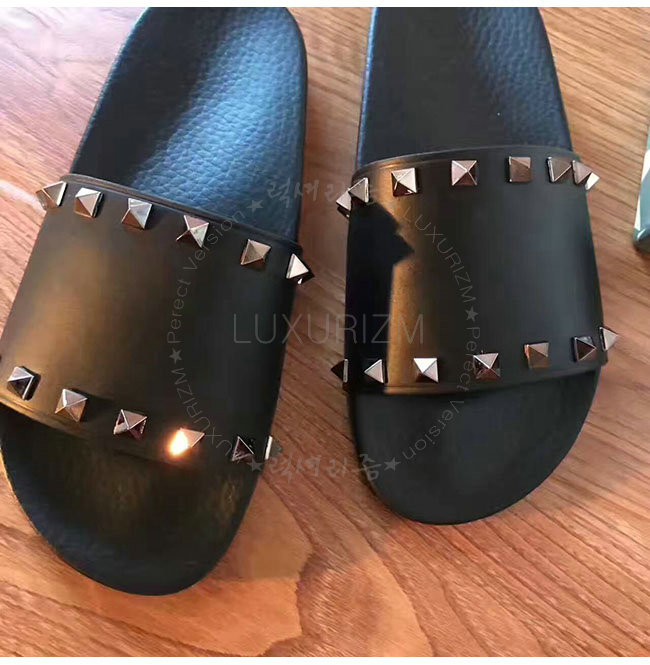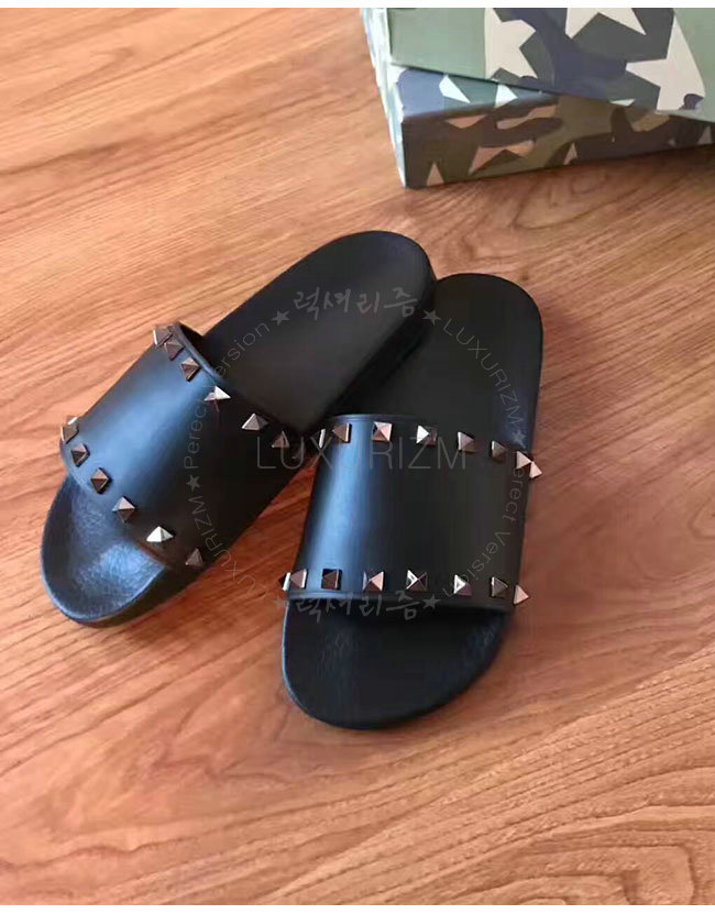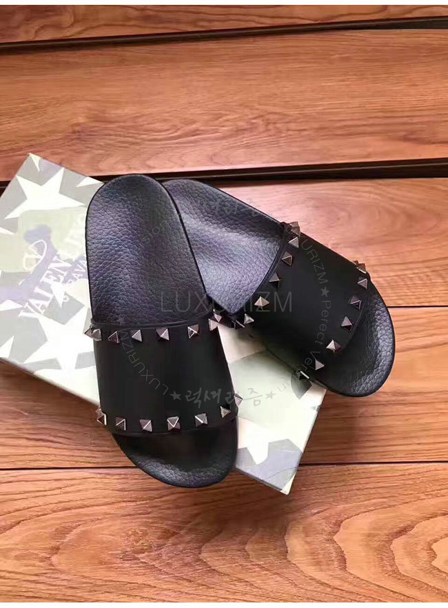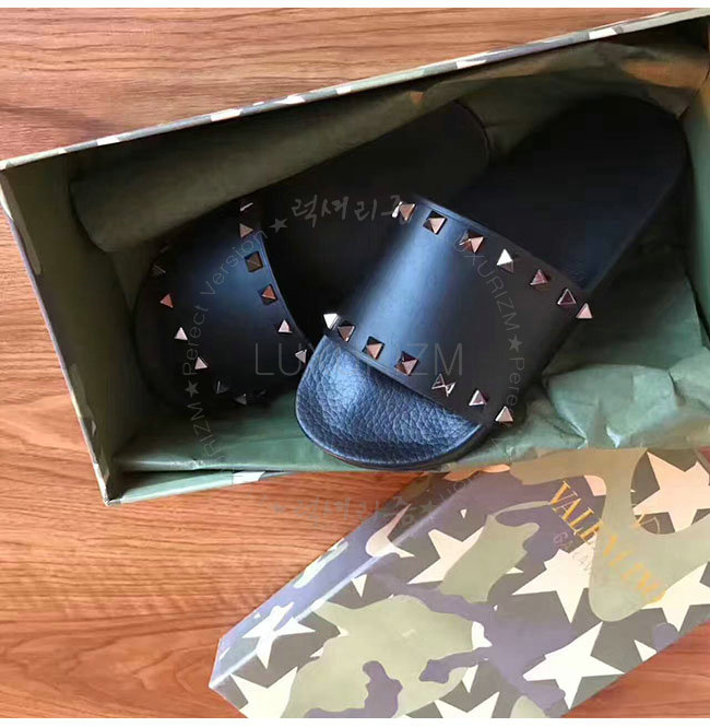 VALENTINO-1S0076 발렌티노 락스터드 슬라이드 블랙 샌들 여성용